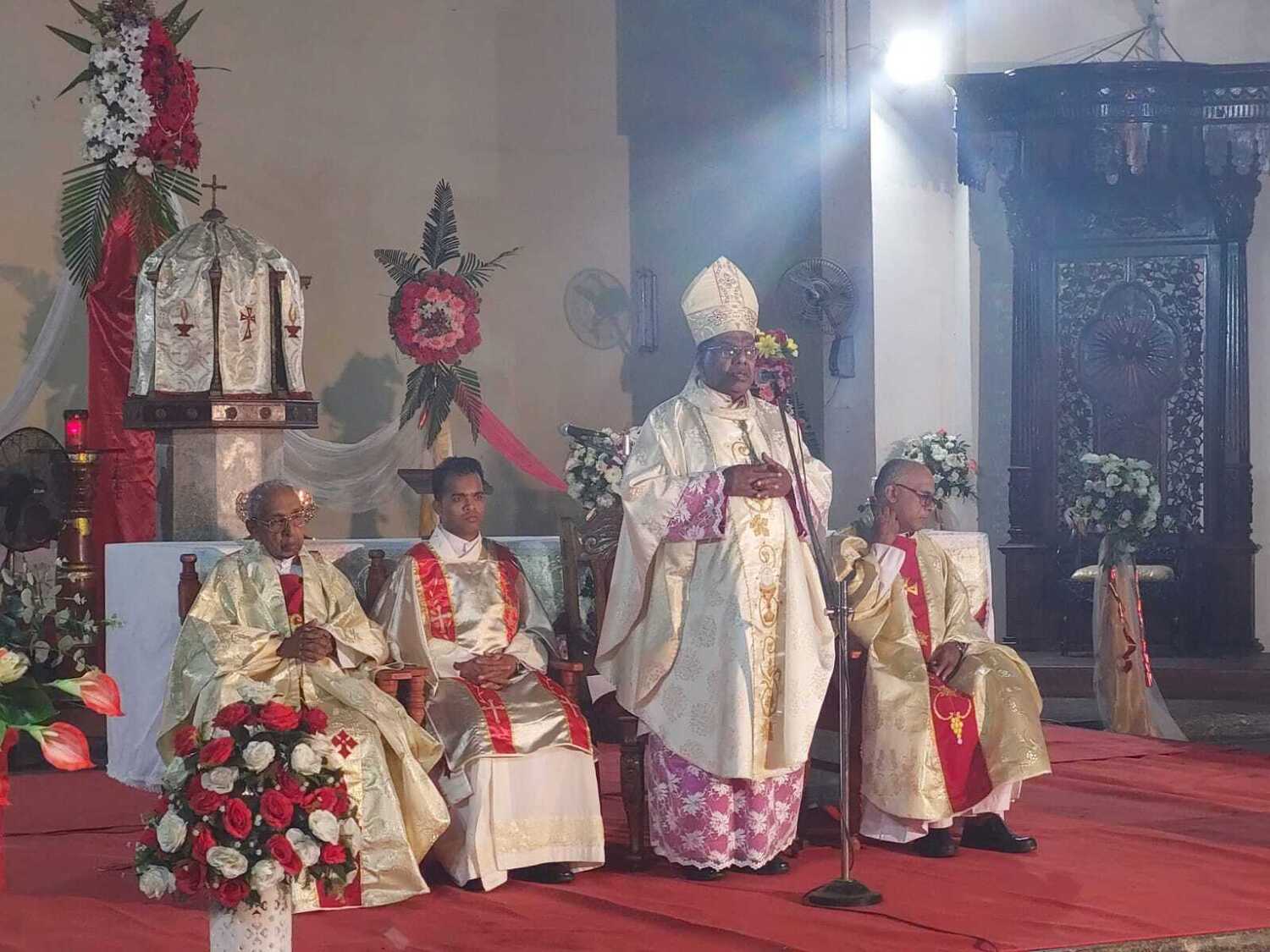 யாழ். மறை மாவட்ட ஆயர் ஜஸ்டின் ஞானப்பிரகாசம் ஆண்டகை தலைமையில் கூட்டு திருப்பலியாக ஒப்புக்கொடுக்கப்பட்டது.