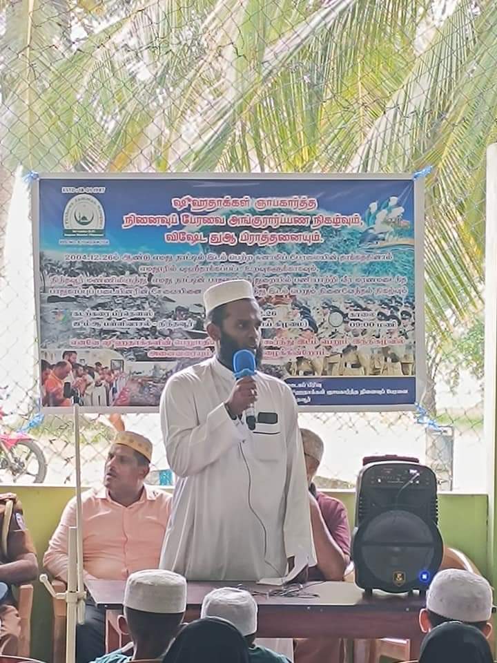 நிந்தவூர் கடற்கரை பிர்தௌஸ் ஜும்ஆப் பள்ளிவாசலில் பேஷ் இமாம் அல்-ஹாபிழ் மௌலவி ஏ.பீ.எம். ஷிம்லி (நஹ்ழி) தலைமையில் விசேட துஆ பிரார்த்தனை மற்றும் அன்னதானம் வழங்கல் நிகழ்வு மற்றும் அன்னதானம் வழங்கல் நிகழ்வு உணர்வு பூர்வமாக இடம்பெற்றதுடன், சுனாமி ஞாபகர்த்த நினைவுப் பேரவை அங்குரார்ப்பண நிகழ்வும் இடம்பெற்றமை குறிப்பிடத்தக்கது.