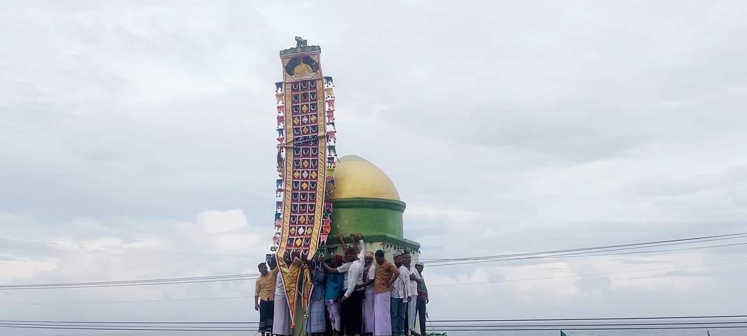 கல்முனை முஹ்யித்தீன் ஜும்ஆப் பெரிய பள்ளிவாயலில் இருந்து புனித கொடியானது உலமாக்கள், பக்கீர் ஜமாஅத்தினர், நிருவாகிகள், ஊர்மக்கள் புடைசூழ தீன் கலிமா முழக்கத்துடன் ஊர்வலமாகச் சென்று கடற்கரை பள்ளிவாசல் நாஹ_ர் ஆண்டகை தர்ஹா மினாராக்களில் ஏற்றி வைக்கப்பட்டது.