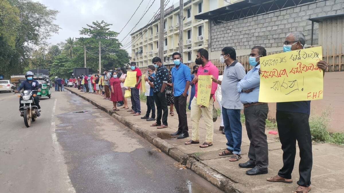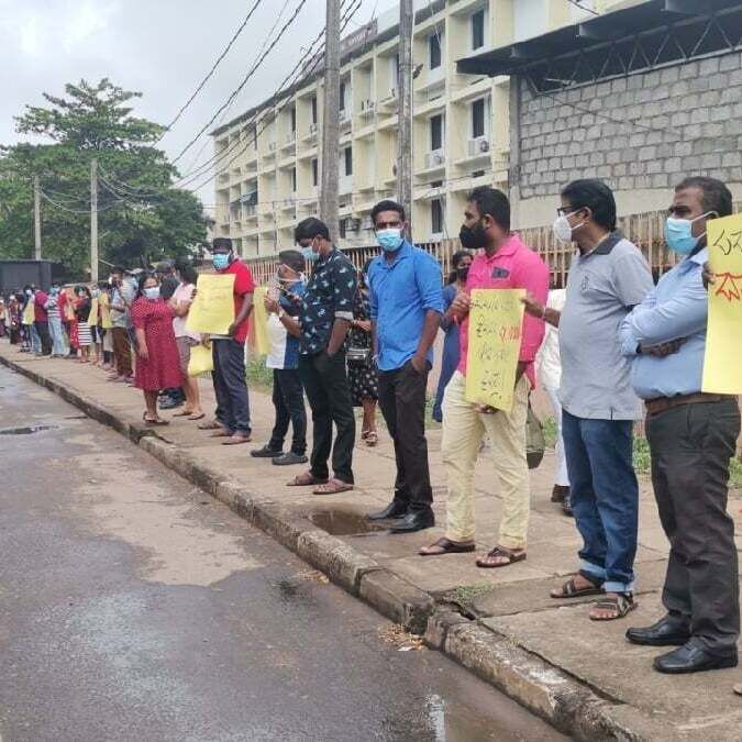 உள்ளிட்ட பல்வேறு கோரிக்கைகளை முன் வைத்து கோஷங்களை எழுப்பியதுடன், சுலோக அட்டைகளையும் ஏந்தியிருந்தனர்.