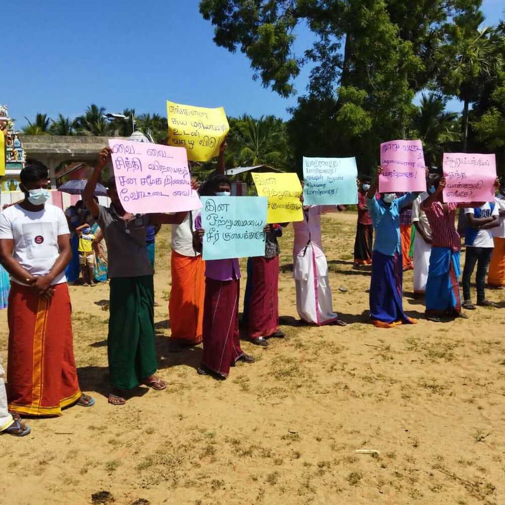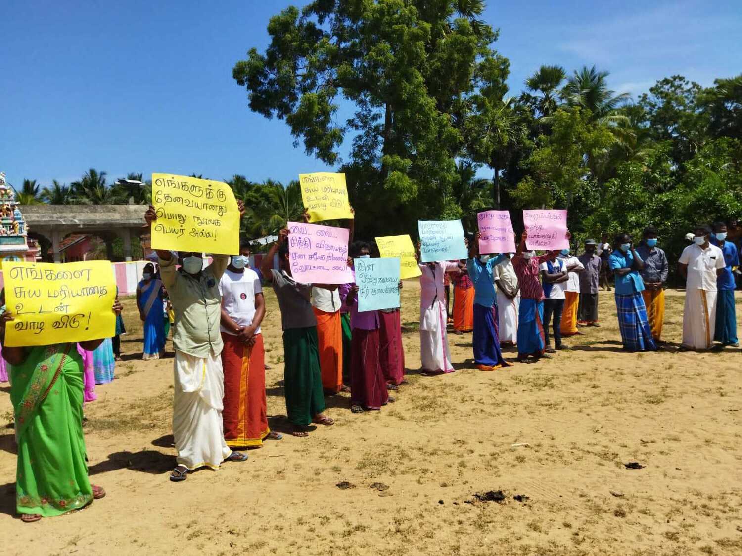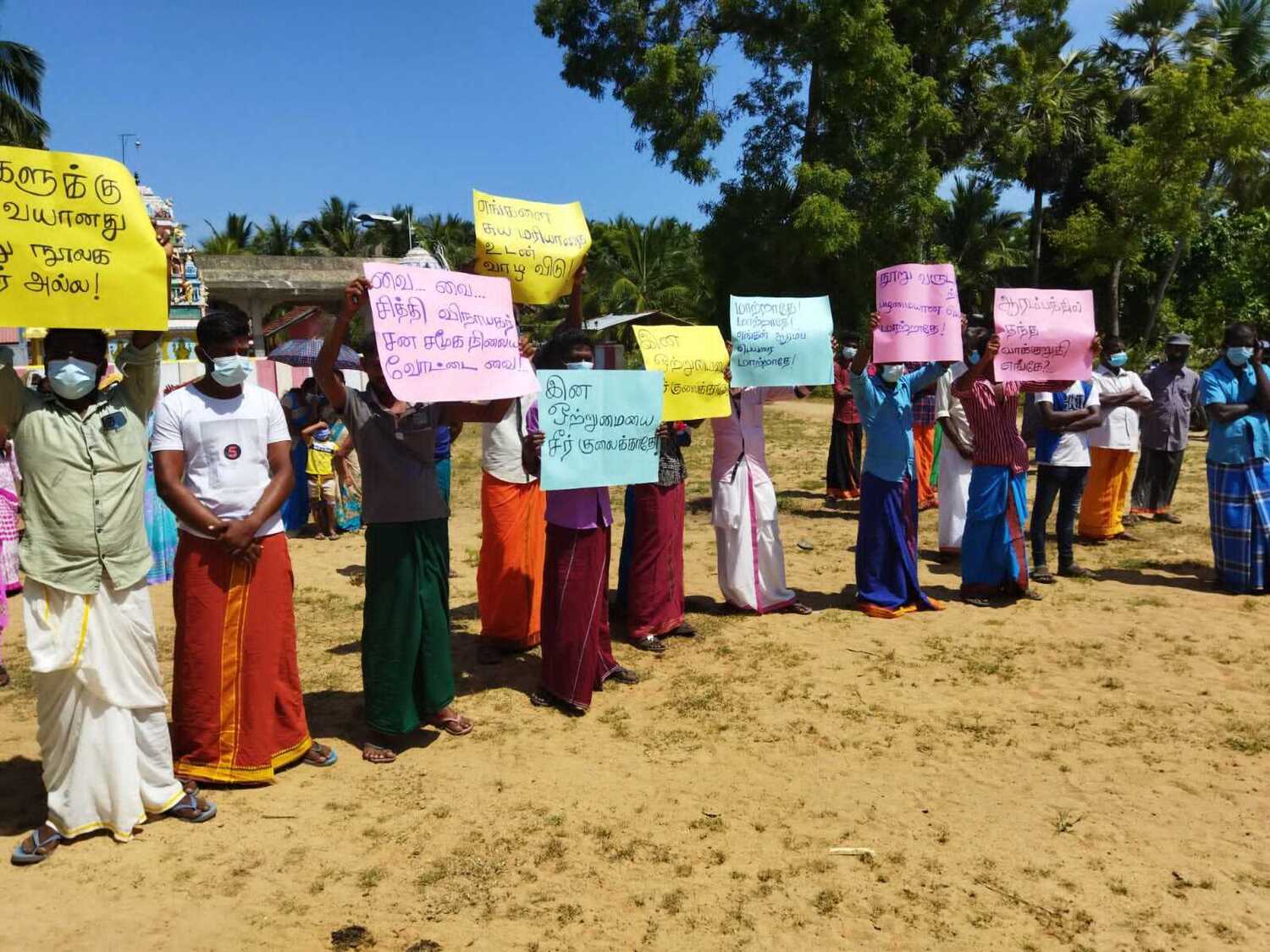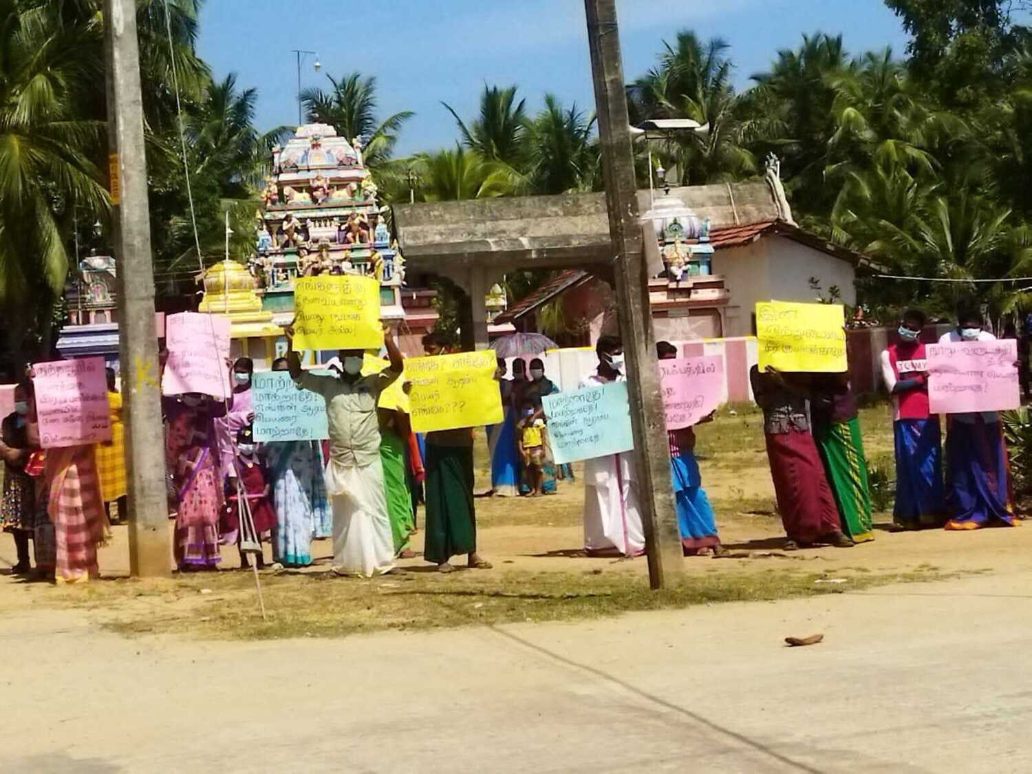 இவர்கள் பல்வேறு வாசகங்களைக் கொண்ட சுலோக அட்டைகளை ஏந்தி இருந்ததுடன் ஆலய தலைவர் கே. கோபாலன் இது தொடர்பான மகஜர் ஒன்றை உள்ளுராட்சி உதவி ஆணையாளரிடம் விழாப்பொதுக்கூட்டம் நடைபெற்றுக் கொண்டிருந்த போது வருகை தந்து கையளித்தார்.