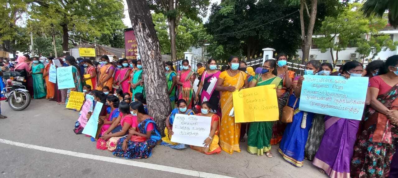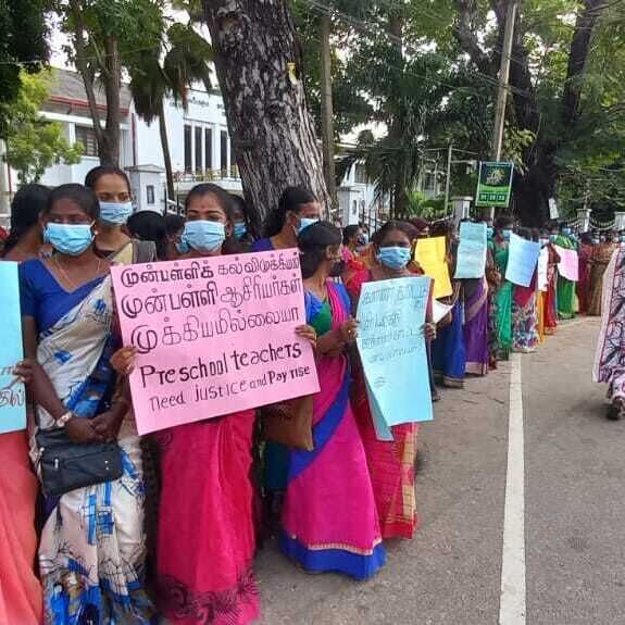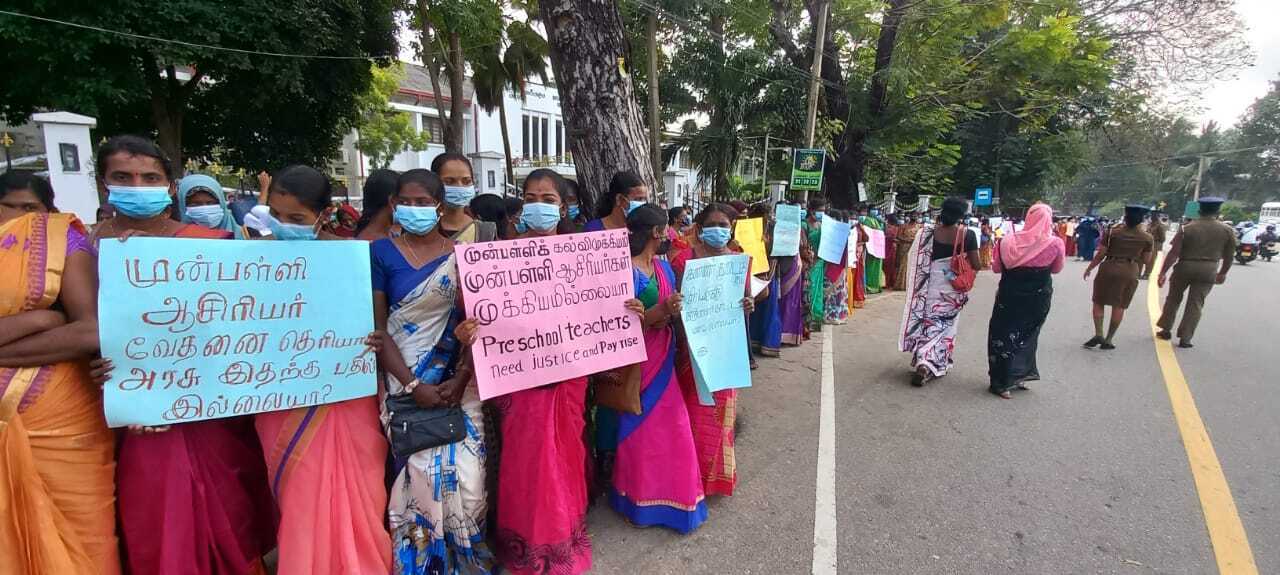 வடக்கு மாகாணத்தைச் சேர்ந்த முன்பள்ளி ஆசிரியர்கள் யாழ்ப்பாண மாவட்ட செயலகம் முன்பாக இன்று திங்கட்கிழமை கவனயீர்ப்புப் போராட்டத்தை முன்னெடுத்தனர்.