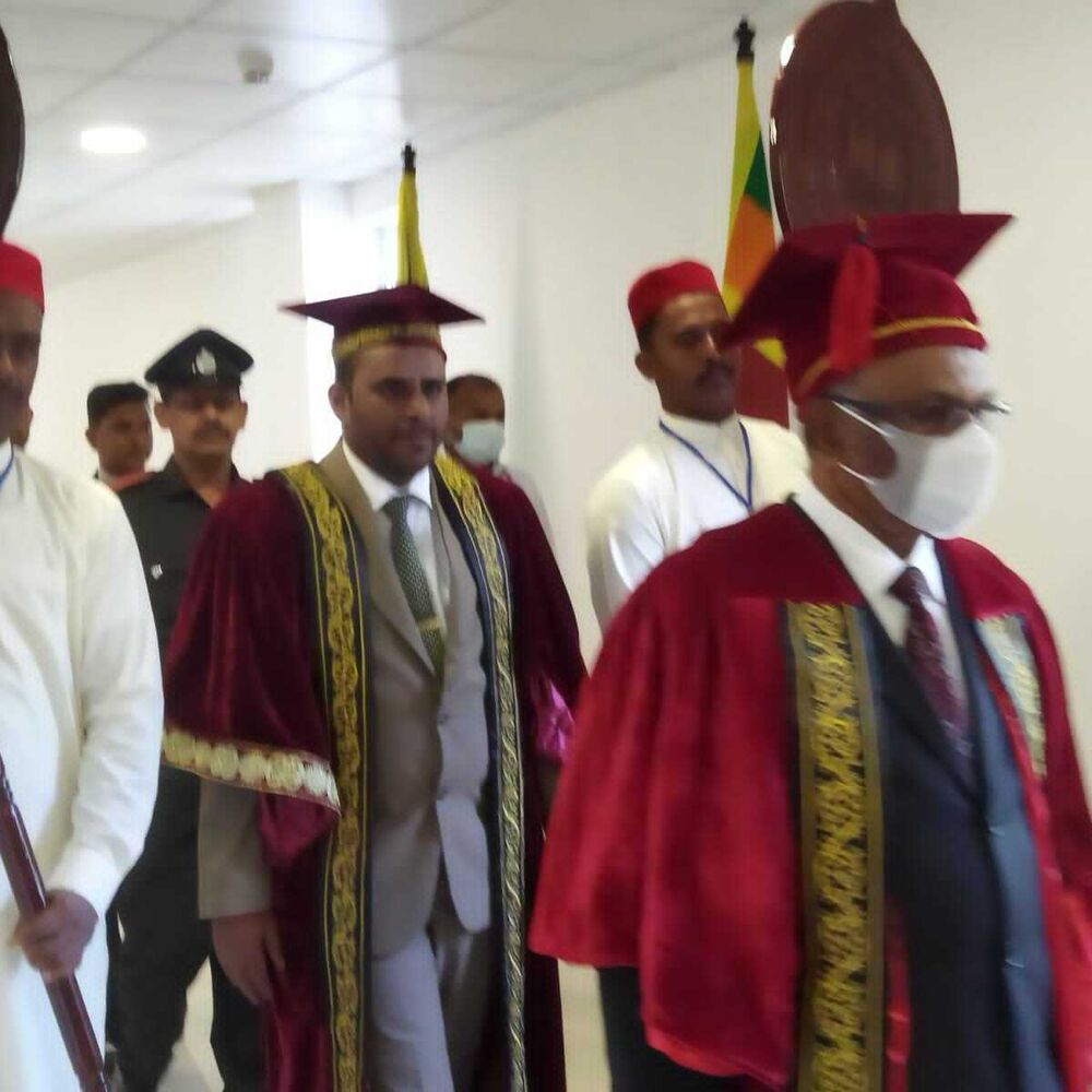 தென்கிழக்கு பல்கலைக்கழக உபவேந்தர் பேராசிரியர் கலாநிதி ரமீஸ் அபூபக்கர் இந்த கௌரவ கலாநிதிப்பட்டத்தை இறுதி நாள் முதல் அமர்வின் போது பிரகடனம் செய்து வழங்கினார்.