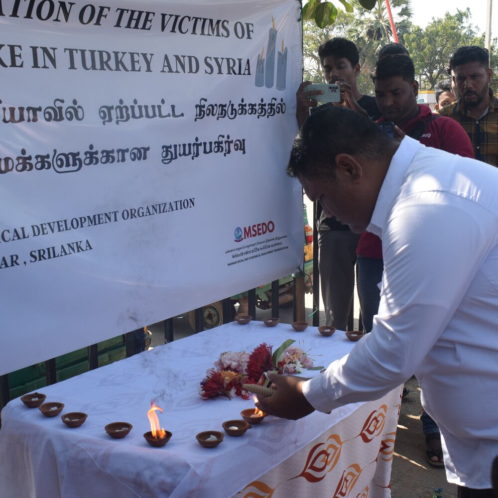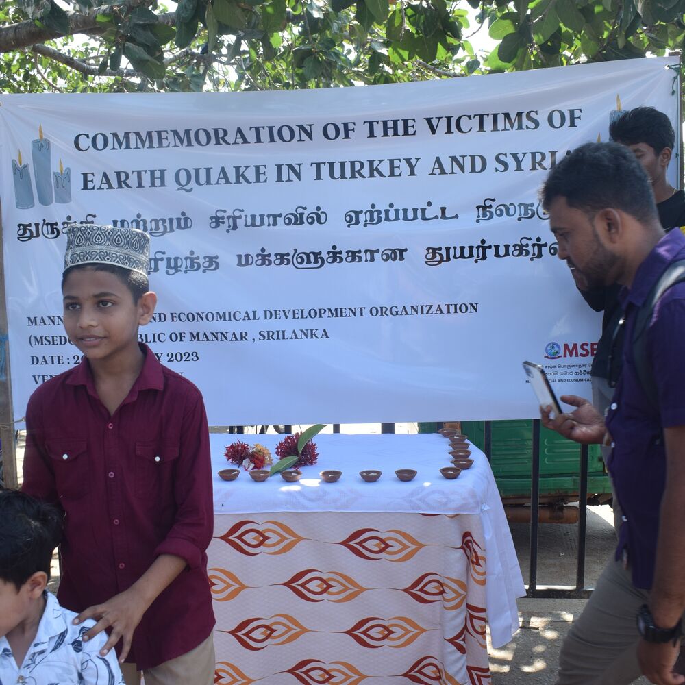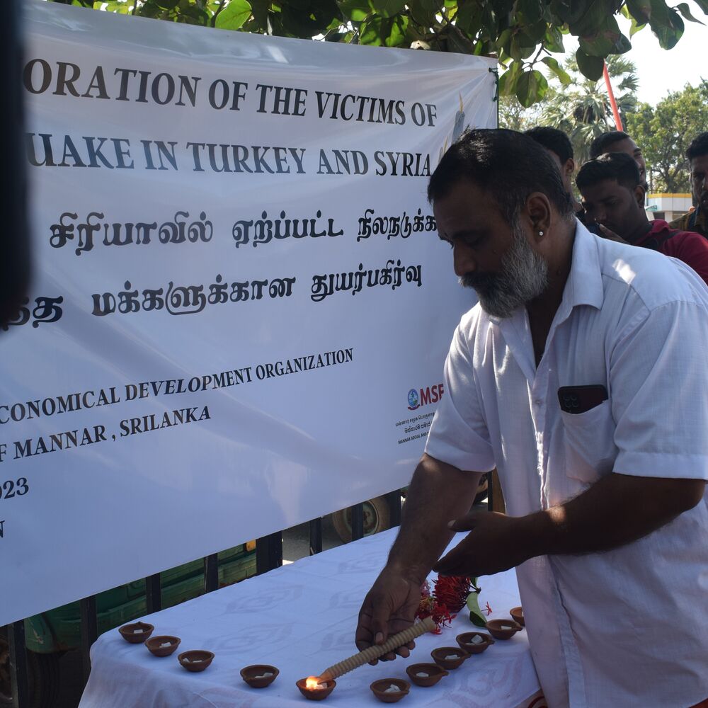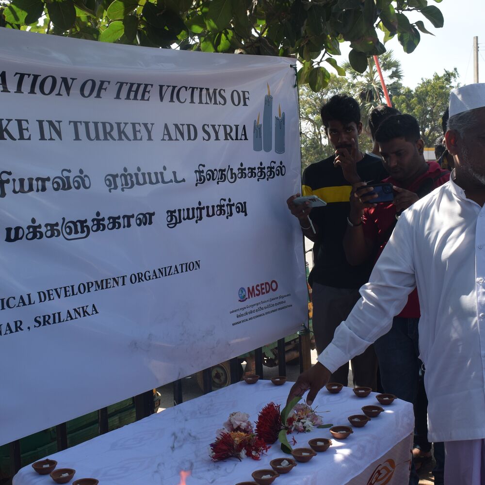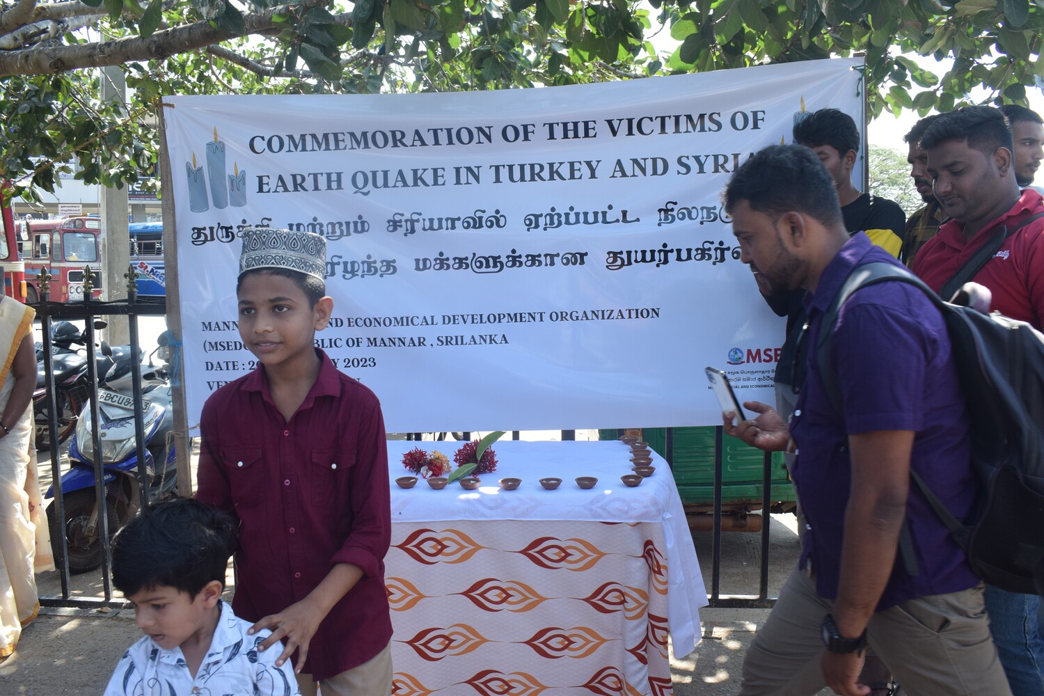 திங்கள் கிழமை (20) காலை மன்னார் நகரில் பிரதான போக்குவரத்து நிலையத்துக்கு முன்பாக துருக்கி மற்றும் சிரியாவில் அன்மையில் ஏற்பட்ட நிலநடுக்கத்தில் உயிரிழந்த மக்களுக்காக இவ்விடத்தில் சர்வமத தலைவர்கள் உட்பட பலதரப்பட்ட அமைப்புக்களின் பிரதிநிதிகள் மற்றும் பொதுநிலையினரும் ஒன்றுகூடி பிராத்தனையில் ஈடுபட்டதுடன் யாவரும் சுடர் எற்றி மலர்கள் தூவி தங்கள் அஞ்சலியை செலுத்தினர்.