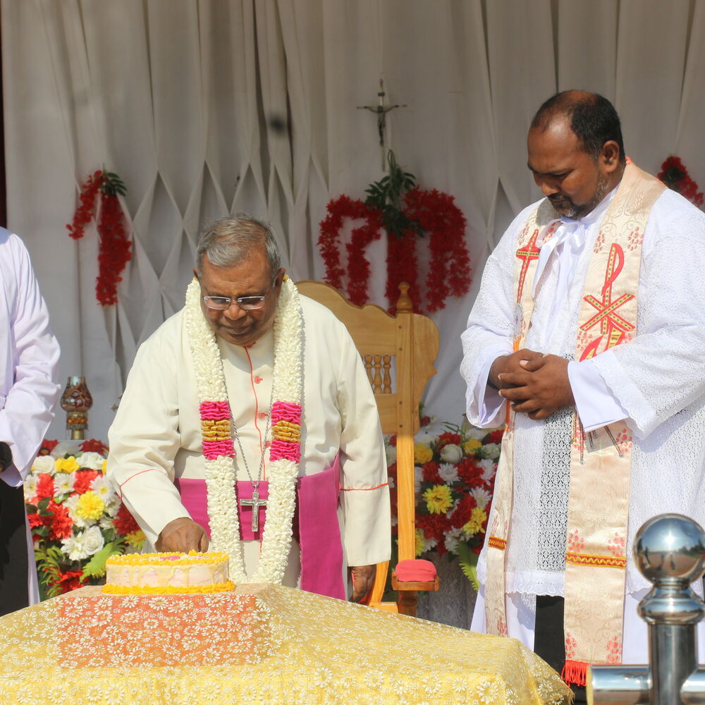 மாந்தை மாதா திருவிழா அன்று சனிக்கிழமை (11) இந் நிகழ்வு திருவிழா முடிந்ததும் பக்தர்கள் மற்றும் அருட்பணியாளர்கள் துறவறச் சார்ந்தவர்கள் புடைசூழந்திருந்த நிலையில் பங்கு தந்தை அருட்பணி யே. அமல்ராஜ் குரூஸ் அடிகளார் குரு முதல்வர் பி. கிறிஸ்துநாயகம் அடிகளார் ஆகியோர் ஆயருடன் இணைந்து கேக் வெட்டும் இந் நிகழ்வு இடம்பெற்றது.