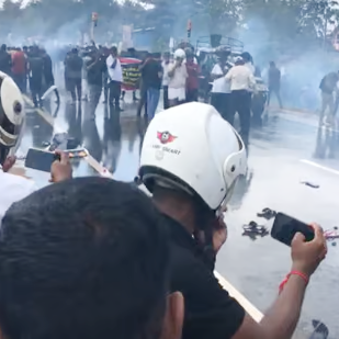 தடை வேலிகள் அமைக்கப்பட்ட இடத்தைப் பேரணி அடைந்ததும் அவர்களை அங்கிருந்து கலைந்து செல்லுமாறு பொலிஸார் எச்சரித்தனர். போராட்டக்காரர்கள் கலைய மறுத்த நிலையில் அவர்கள் மீது கண்ணீர் புகைக் குண்டுகள் வீசித் தாக்கப்பட்டன. அத்துடன், தண்ணீரை விசிறி அடித்தும் பொலிஸார் அவர்களை கலைக்க முயன்றனர். மேலும், போராட்டக்காரர்கள் மீது தடியடி நடத்தியும் நடத்தினர்.