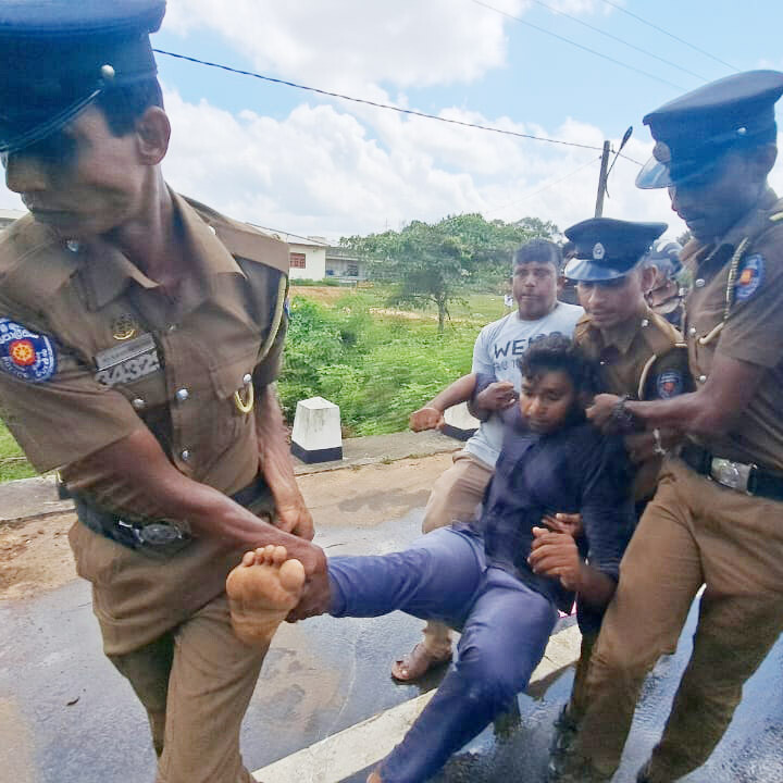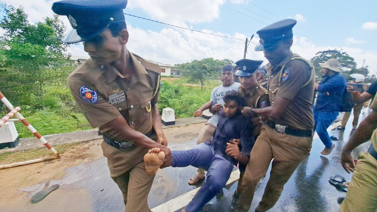 இந்த நிலையில், 5 மாணவர்களை பொலிஸார் விரட்டிப் பிடித்து கைது செய்தனர். இதன்போது, போராட்டத்தில் பங்கேற்றிருந்த சிறீதரன், சார்ள்ஸ் நிர்மலநாதன் ஆகிய பாராளுமன்ற உறுப்பினர்கள் பொலிஸாரிடம் இருந்து மாணவர்களை காப்பாற்ற முயன்றனர். இதன்போது இருவர் மீதும் பொலிஸார் தாக்குதல்களை நடத்தினர். அத்துடன், பாராளுமன்ற உறுப்பினர்கள் இருவரின் பாதுகாப்பு பொலிஸாருடனும் முரண்பட்டனர்.