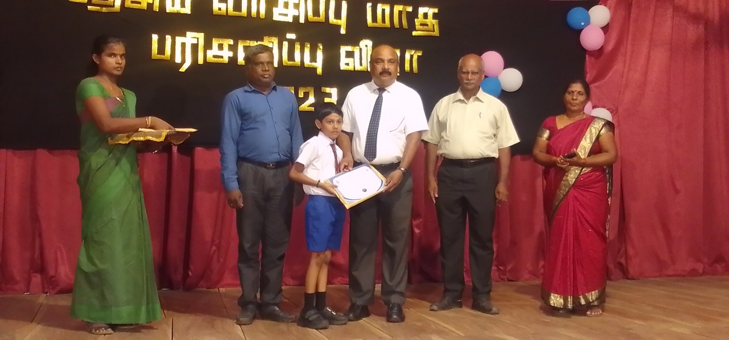 அதனைத் தொடர்ந்து வாசிப்பு மாதத்தை ஒட்டி நடத்தப்பட்ட போட்டிகளில் முதல் மூன்று இடங்களை பெற்ற வெற்றியாளர்களுக்கான பரிசில்கள் மற்றும் சான்றிதழ்களை பிரதம, சிறப்பு, கௌரவ விருந்தினர்கள் வழங்கி கௌரவித்தனர்.