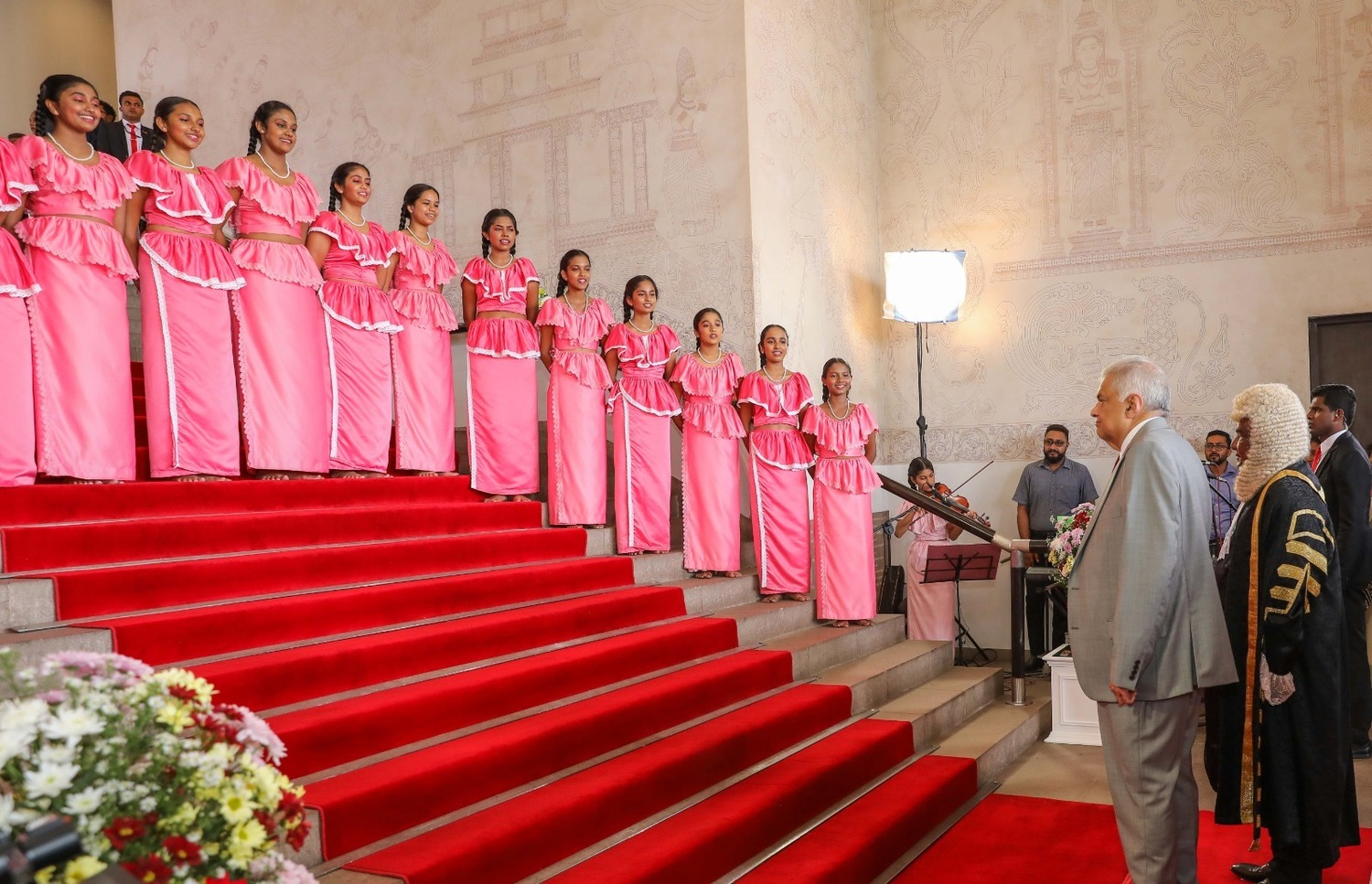 அதன்போது, பாராளுமன்ற பிரதான வாயில் முன்பாக பாடசாலை மாணவிகள் ஜெயமங்கல கீதம் பாடினர்.