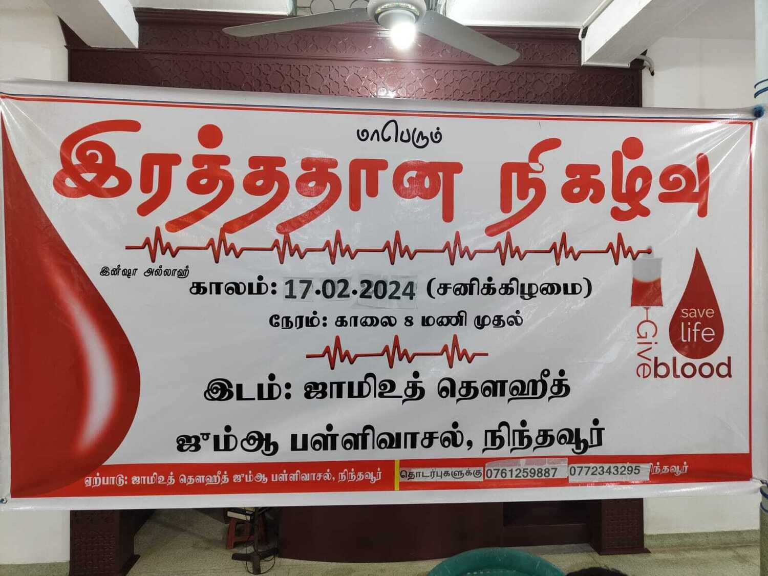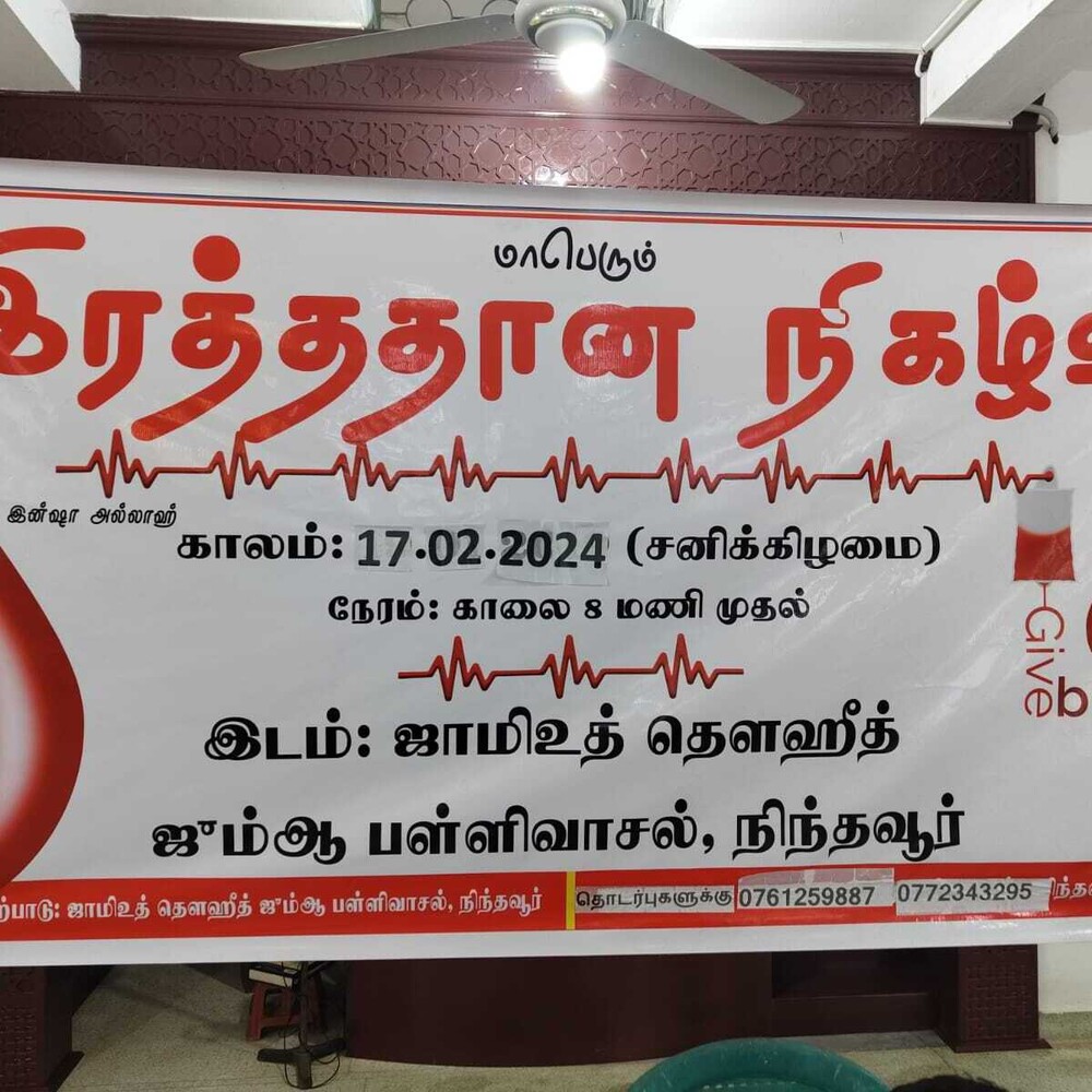 நிந்தவூர் ஜாமிஉத் தௌஹீத் ஜும்ஆப் பள்ளிவாசலின் சமூக சேவைப் பிரிவு ஏற்பாடு செய்த 14வது மாபெரும் இரத்ததான நிகழ்வு பள்ளிவாசல் வளாகத்தில் சிறப்பாக இடம் பெற்றது.