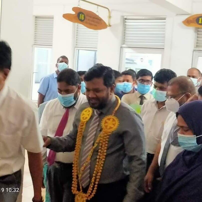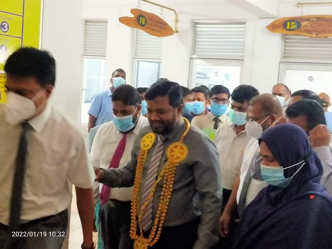 அவருக்கு அங்கு உத்தியோகத்தர், ஊழியர்கள் மற்றும் வைத்திய அதிகாரிகள் வரவேற்பளித்தனார்.
