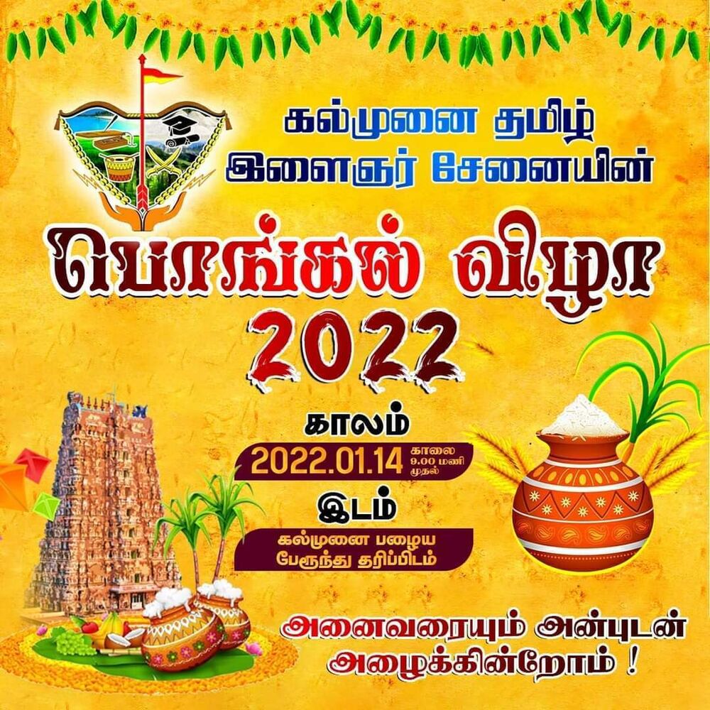 கிழக்கின் முகக்pய நகரங்களுள் ஒன்றான கல்முனை மாநகரில் கல்முனை தமிழ் இளைஞர்சேனை பொங்கல் விழாவை நாளை 14 ஆம் திகதி வெகுவிமரிசையாக நடத்தவுள்ளது.