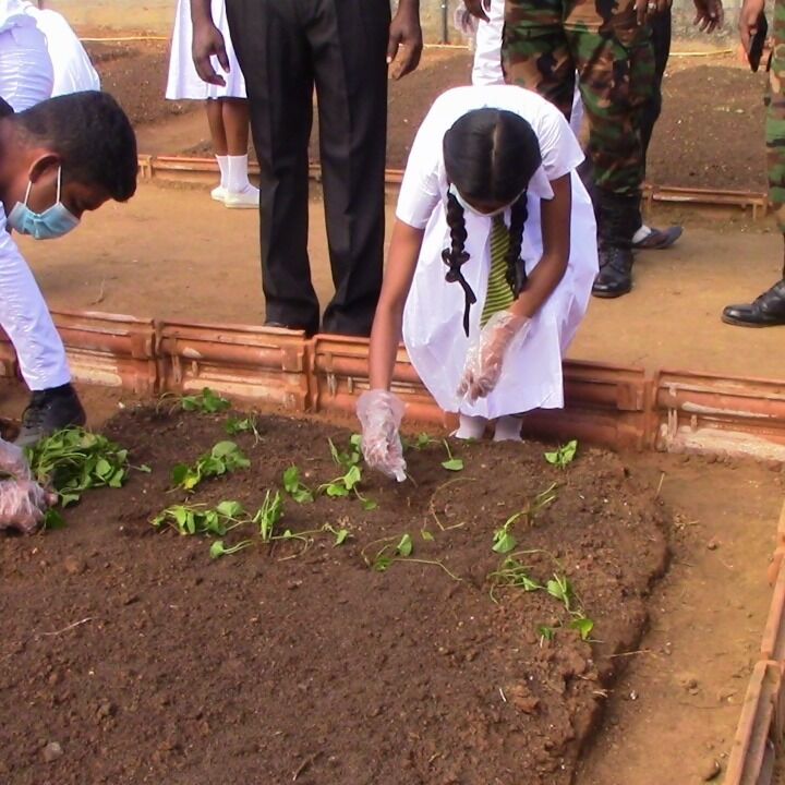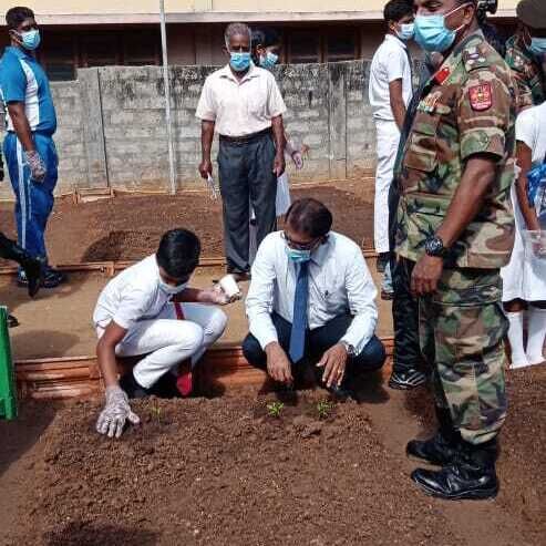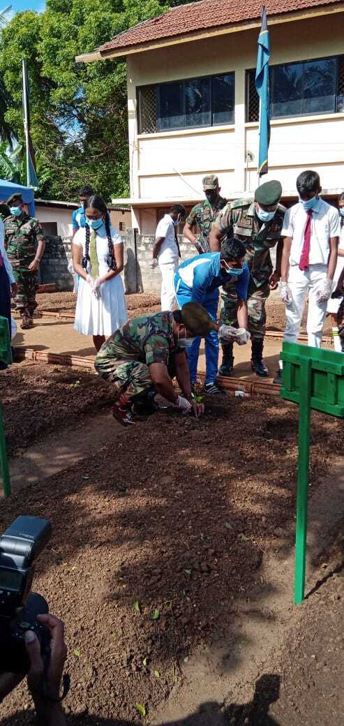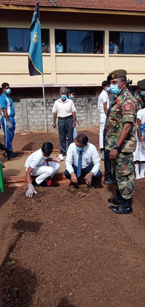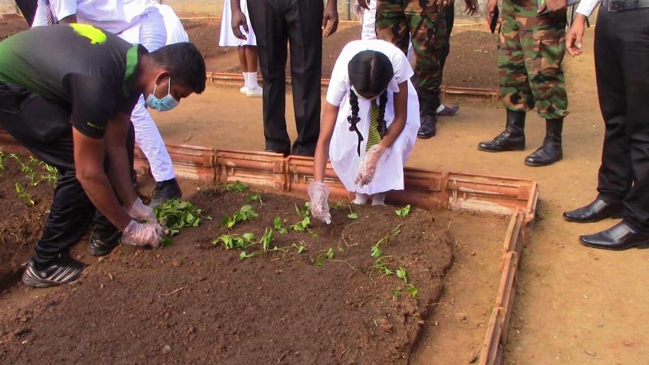 அறிமுக நிகழ்வைத் தொடர்ந்து வளாகத்தில் அமைக்கப்பட்ட 24 நாற்று மேடைகளில் மரக்கறி வகைகளுக்கான விதைகள், நாற்றுக்கள் பிரதம அதிதிகள் சிறப்பு அதிதிகள், மாணவர்களால் நடுகை செய்யப்பட்டன. தொடர்ந்து பிரிகேடியர் பிரசன்ன குணவர்ன மாவட்டச் செயலர் கே.மகேசன் ஆகியோர் இந் நாற்று மேடைகளில் பயன்படுத்த சேதனைப் பசளை பொதிகளை வழங்கினார்கள்.