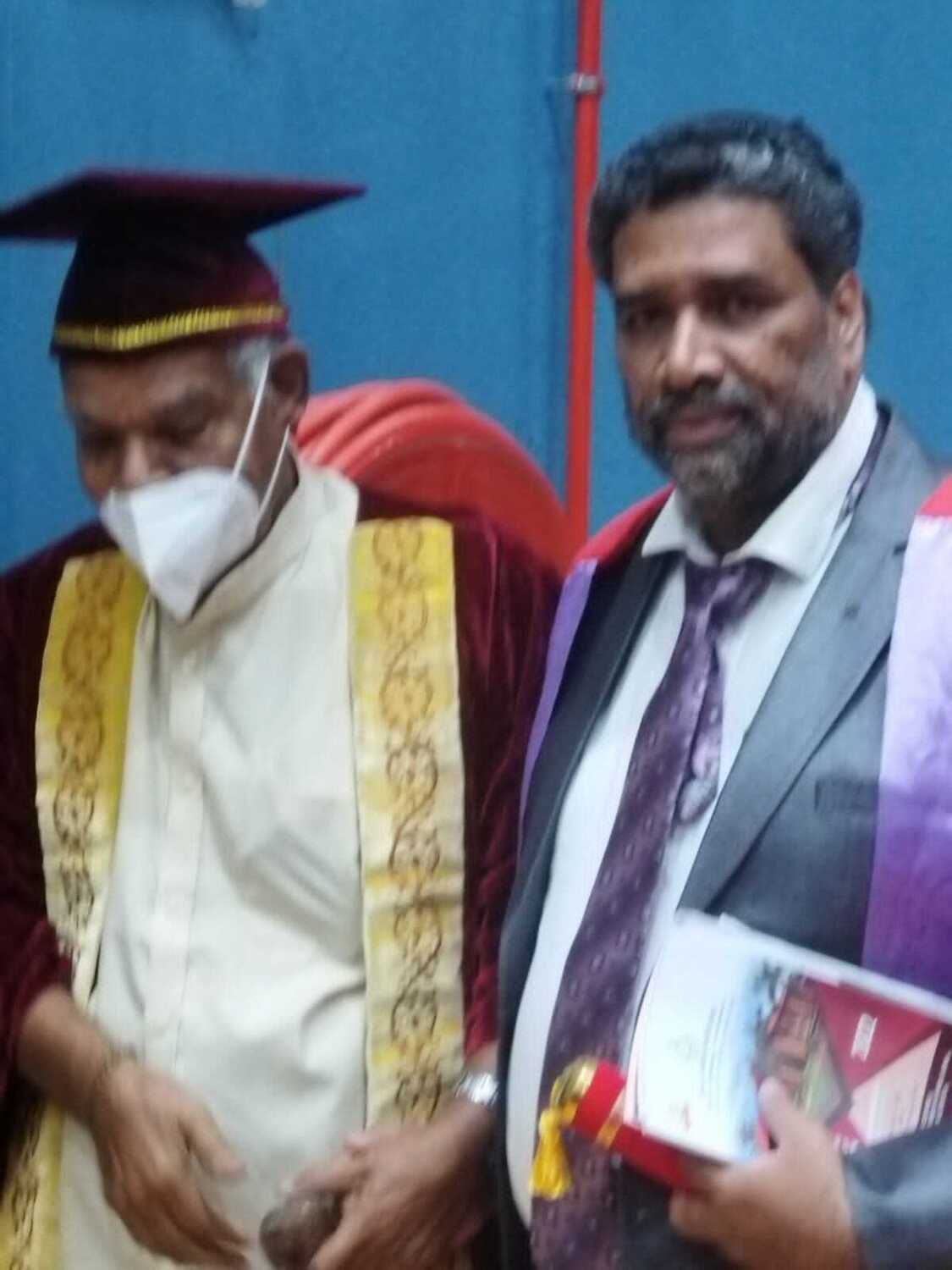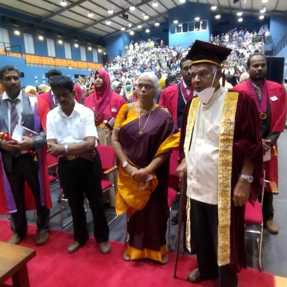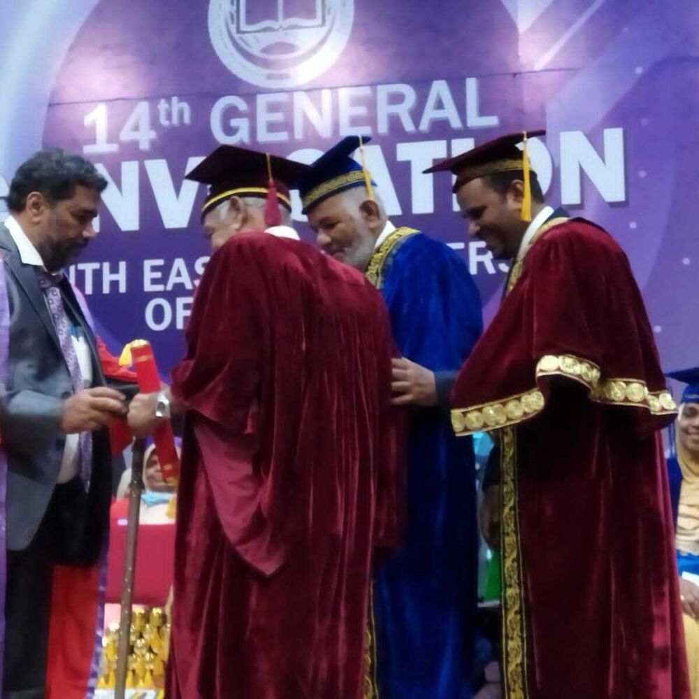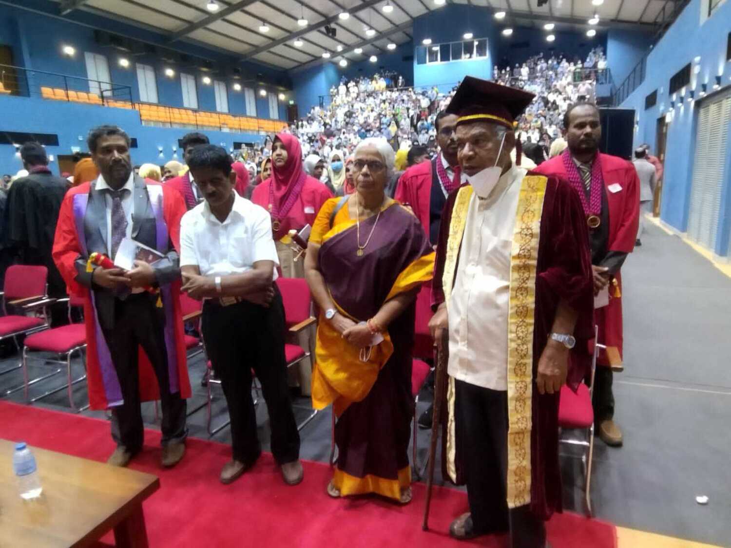 இதன்போது பல்கலைக்கழக பதிவாளர் எச். அப்துல் சத்தார், பேராசிரியர் ரமீஸ் அப்துல்லா ஆகியோர் சகிதம் கௌரவ கலாநிதி பட்டத்தை, மீயுயர் நீதிமன்ற (உயர்நீதிமன்ற) நீதியரசர் ஏ.எச்.எம். திலீப் நவாஸ், மற்றும் பல்கலைக்கழக பீடாதிபதிகள், விரிவுரையாளர்கள், துறைசார் தலைவர்கள், பட்டம் பெற்ற மாணவர்கள், பெற்றோர் முன்னிலையில் உபவேந்தர் ரமீஸ் அபூபக்கர் வழங்கி கௌரவித்தார்.