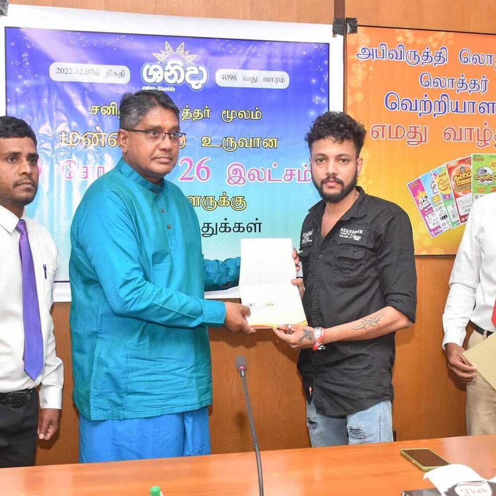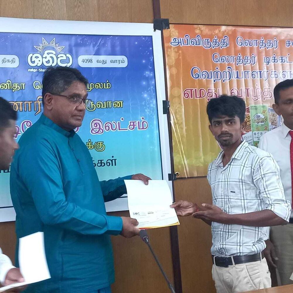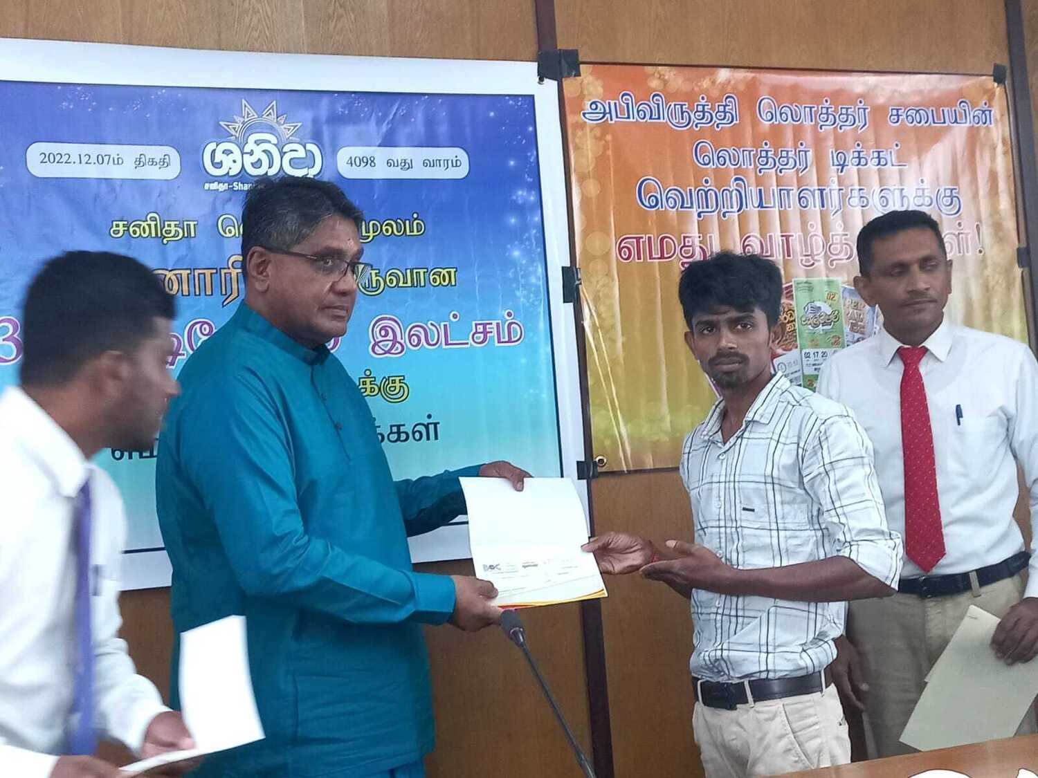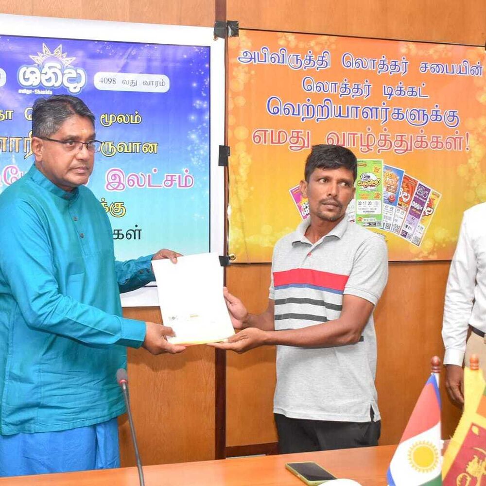 அபிவிருத்தி லொத்தர் சபையின் கடந்த இரண்டு மாதங்களில் வடமாகாணத்தில் வெற்றி பெற்ற வெற்றியாளர்களுக்கு வடமாகாண ஆளுனர் கௌரவ ஜீவன் தியாகராசா தலைமையில் வடகிழக்கு பிராந்திய முகாமையாளர் திரு. குமாரசிறி, யாழ்ப்பாணம் மற்றும் மன்னார் மாவட்ட விற்பனை மேம்படுத்தல் அதிகாரி திரு . தவகோகுலன், கிளிநொச்சி மற்றும் வவுனியா விற்பனை மேம்படுத்தல் அதிகாரி திரு. பிரதீபன் ஆகியோரின் முன்னிலையில் மன்னார் மாவட்டத்தில் சனிதா ரிக்கற்றின் மூலம் வெற்றி பெற்ற வெற்றியாளருக்கு மாபெரும் சுப்பர் பரிசான 3 கோடி 26 இலட்சம் ரூபா காசோலை மற்றும் பளைபிரதேசத்தில் வலம்புரி அதிஷ்ட ரிக்கற்மூலம் வெற்றி பெற்ற வெற்றியாளருக்கு 20 இலட்சம் காசோலை மற்றும் சங்கானை, யாழ்பாணம், சாவகச்சேரி, வவுனியா, மன்னார் பிரதேசங்களில் சனிதா அதோடிபதிஇகப்ருக்க அதிஷ்ட ரிக்கற் ஊடாக வெற்றி பெற்ற வெற்றியாளர்களுக்கு தலா 10 இலட்சம் காசோலைகளும் கௌரவ ஆளுநர் ஜீவன் தியாகராசா அவர்களால் வழங்கப்பட்டது இந்நிகழ்வு வடமாகாண ஆளுநர் அலுவலகத்தில் 07.01.2023 அன்று நடைபெற்றது.