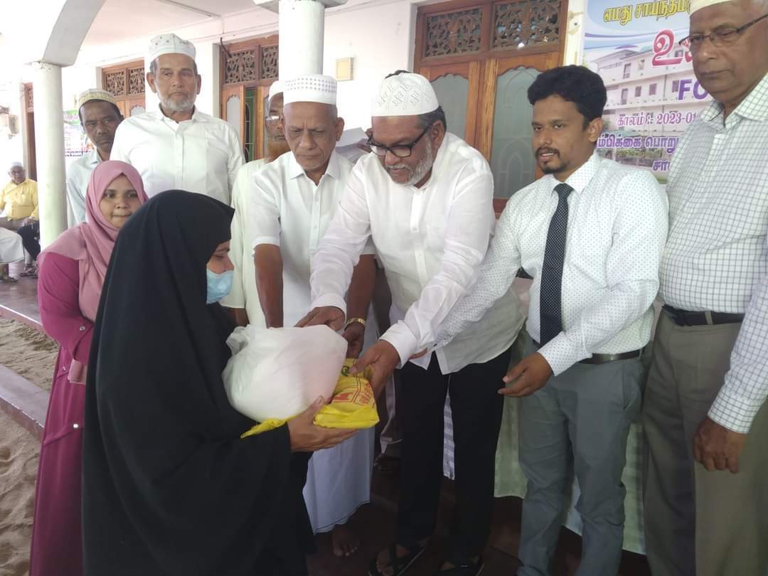 ஜும் ஆப்பள்ளிவாயல் முன்றலில் பிரதேச செயலாளர் எம்.எம். ஆஷிக் தலைமையில் இடம் பெற்ற இந்நிகழ்வில் சாய்ந்தமருது பிரதேசத்திலுள்ள தெரிவு செய்யப்பட்ட மிகவும் வறிய 80 குடும்பங்களுக்கு அத்தியாவசிய உணவுப்பொருட்கள் வழங்கி வைக்கப்பட்டன.