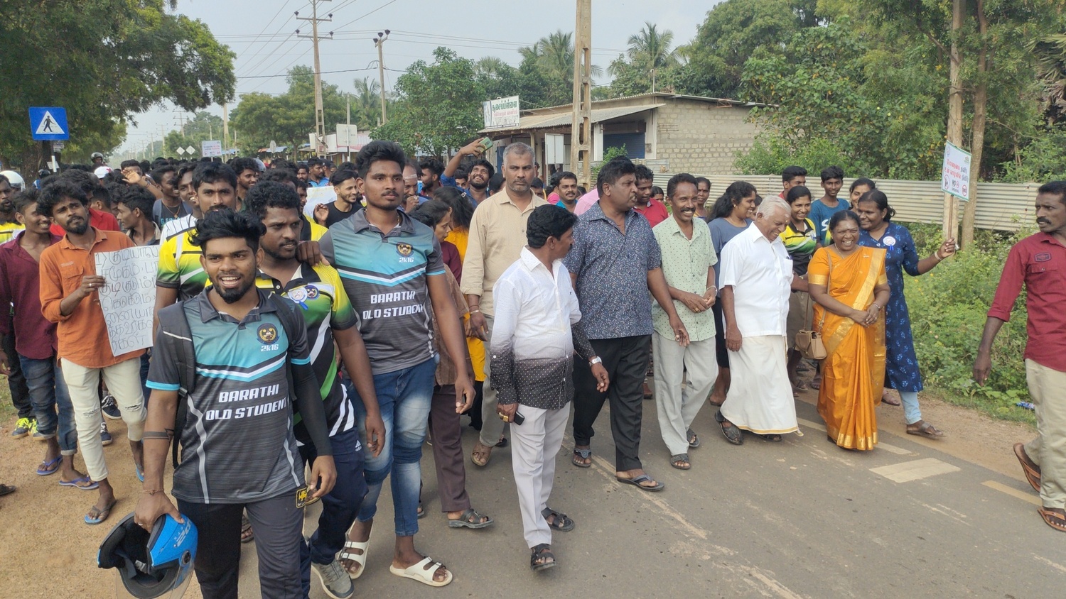 பிற்பகல் 3.30 மணியளவில் சூசைப்பிள்ளை சந்தியில் ஆரம்பிக்கப்பட்ட பேரணி, பாரதிபுரம் மத்திய வீதி ஊடக பாடசாலை முன்றலை அடைந்ததும் நிறைவடைந்தது.