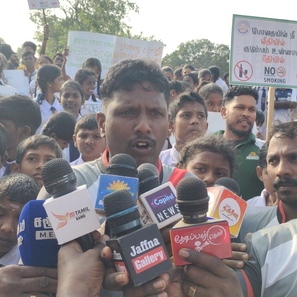 போதைப் பொருளற்ற சமுதாயத்தை உருவாக்கும் நோக்கில் கவனயீர்ப்பு பேரணி நேற்று (08) ஞாயிற்றுக்கிழமை கிளிநொச்சி பாரதி மகாவித்தியாலய பழைய மாணவர்களால் குறித்த கவனயீர்ப்பு முன்னெடுக்கப்பட்டது.