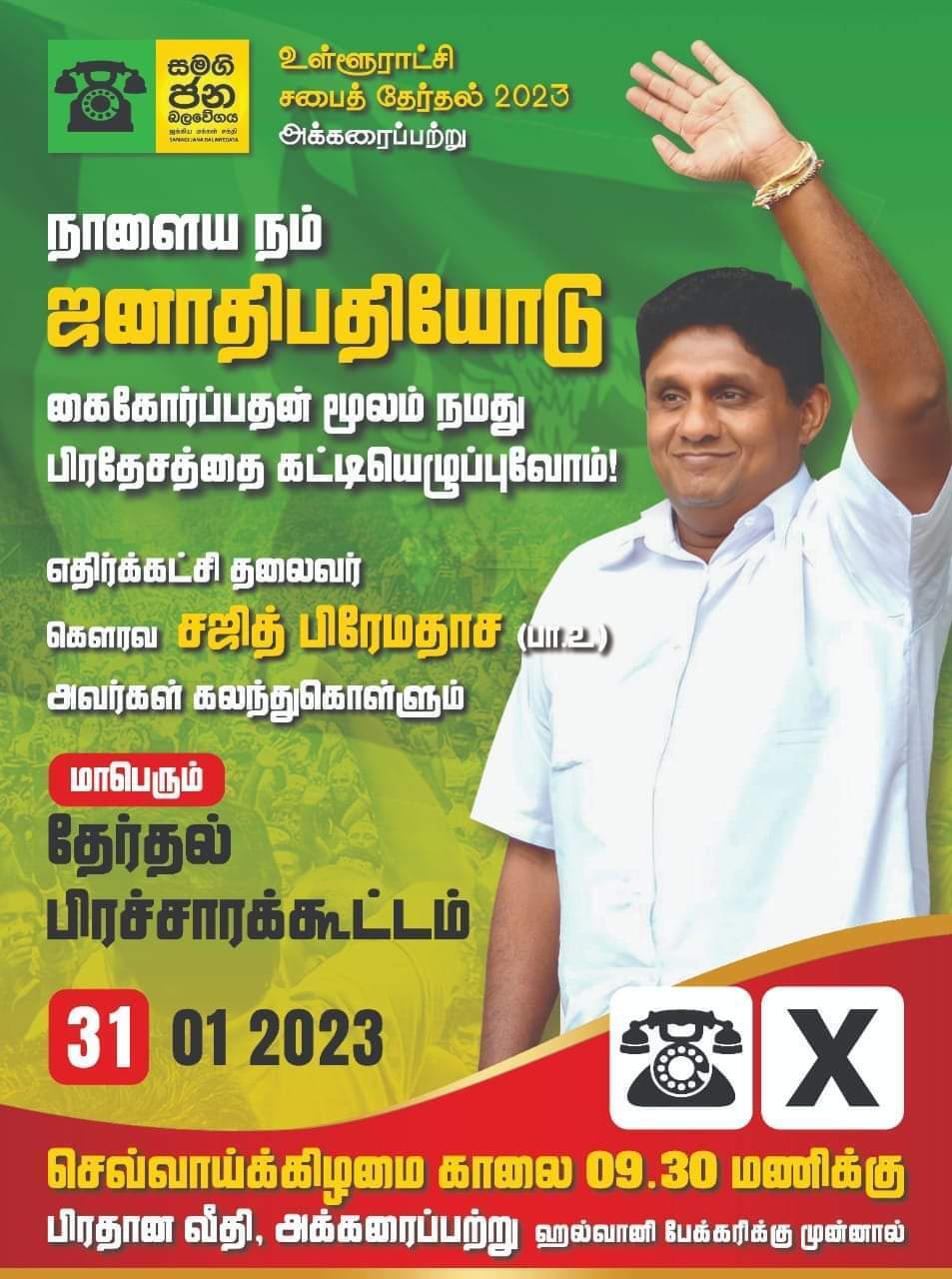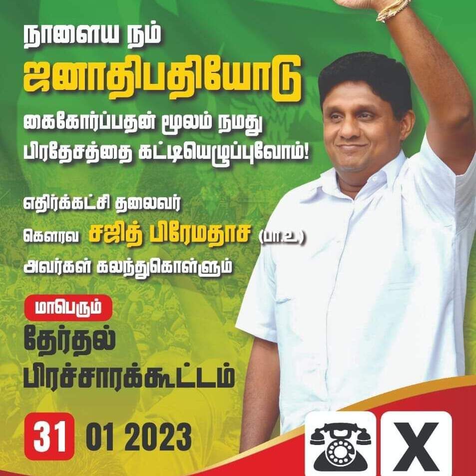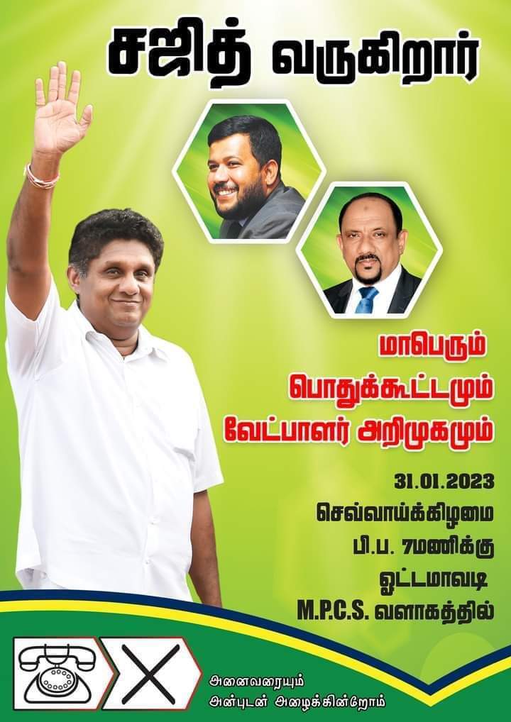ராஜபக்ஷக்கள் மீதும், அவர்களது ஆசிர்வாதத்துடன் நடைபெறும் இன்றைய ரணில் தலைமையிலான ஆட்சி மீதும் மக்கள் கொண்டுள்ள வெறுப்புணர்வு காரணமாக சஜித்தின் பிரச்சார கூட்டங்களில் பெருமளவிலான மக்கள் திரண்டு வந்து கலந்து கொள்வதும் குறிப்பிடத்தக்கது.