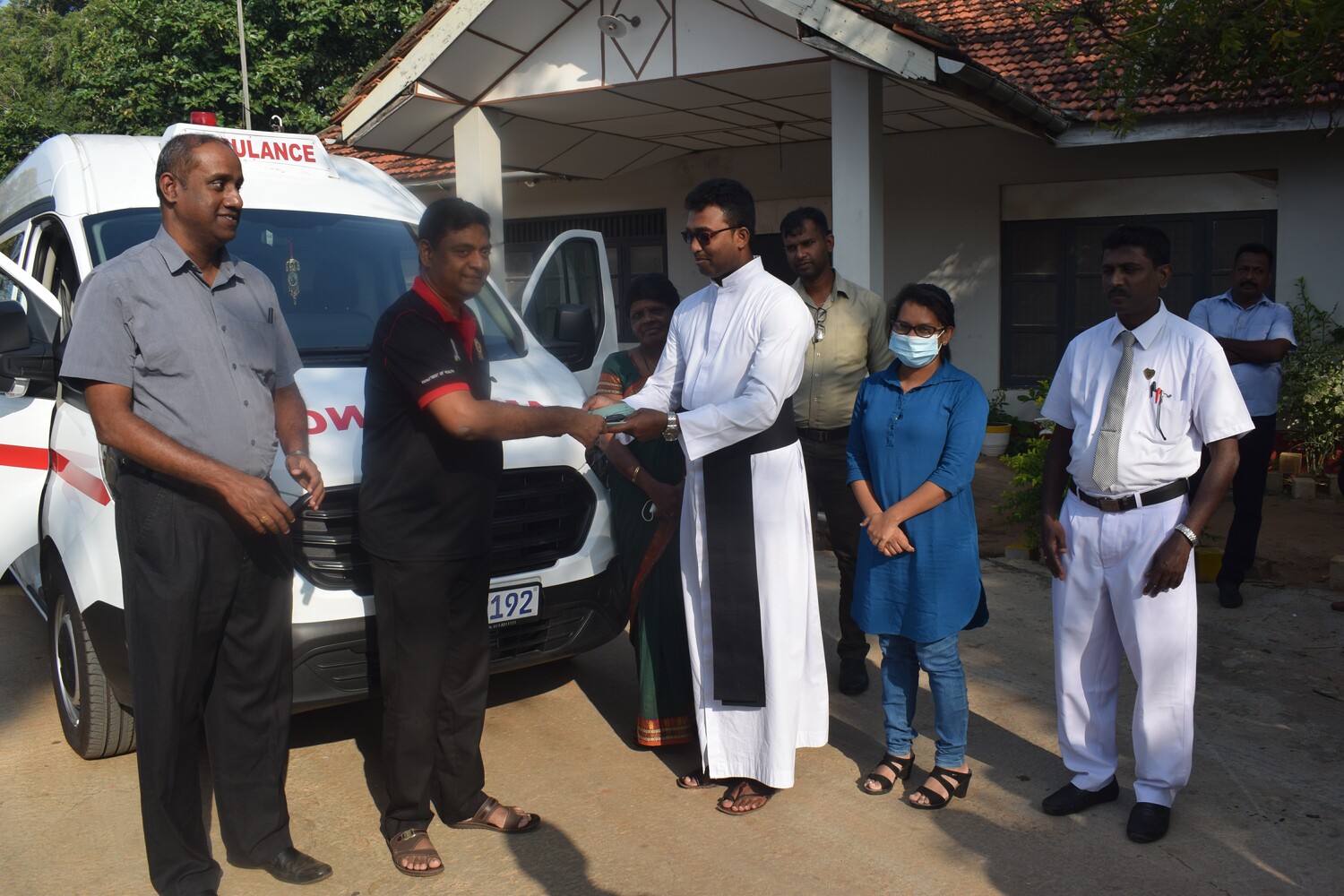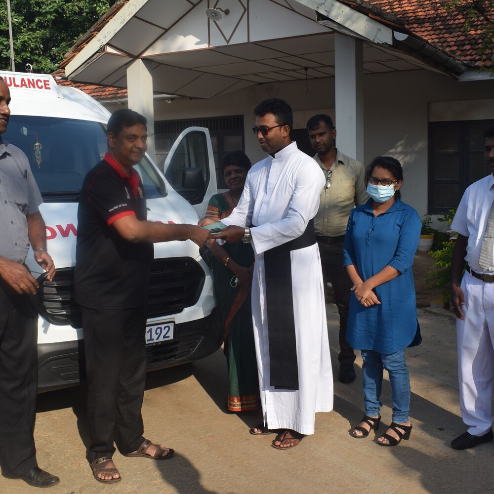 பேசாலை வைத்திய அதிகாரி வைத்திய கலாநிதி இம்மானுவேல் ஈற்றன் பீரீஸ் அவர்களிடம் வைத்திய கலாநிதி வினோதன் உத்தியோகபூர்வமாக அருட்பணி செ. டிசாந்தன் அவர்களுமாக இணைந்து அம்புலன்ஸைக் கையளித்தனர்.