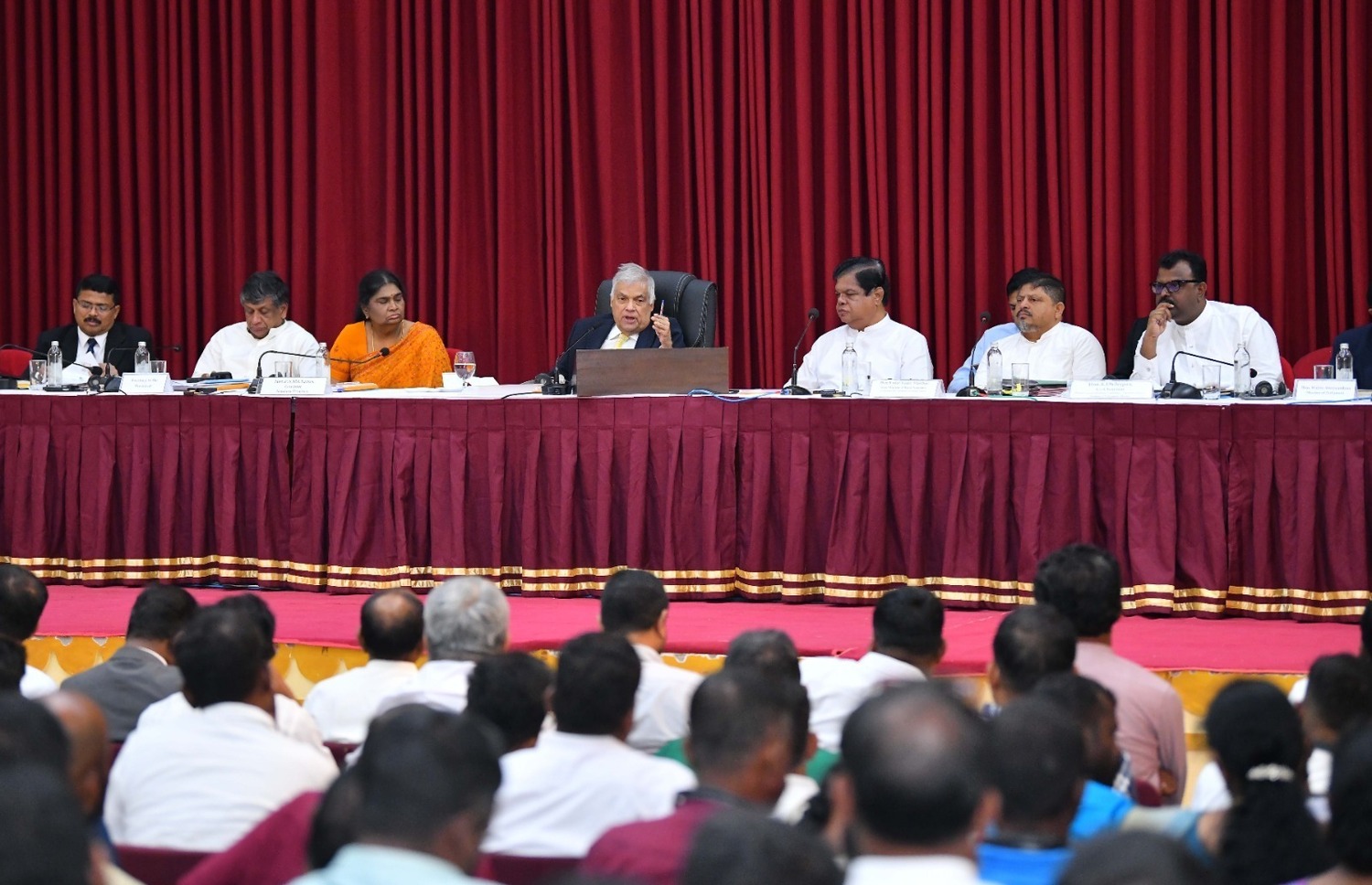 ஜனாதிபதி ரணில் விக்ரமசிங்க தலைமையில் வவுனியா, முல்லைத்தீவு, மன்னார் ஆகிய மாவட்டங்களுக்கான விசேட ஒருங்கிணைப்புக் குழுக்கூட்டம் வவுனியா நகரசபை மண்டபத்தில் வெள்ளியன்று (05) நடைபெற்றது. வடக்கு மாகாண ஆளுநர் பி.எஸ்.எம்.சார்ள்ஸ், ஜனாதிபதி செயலாளர், வட மாகாண பிரதம செயலாளர், பாராளுமன்ற உறுப்பினர்கள், மூன்று மாவட்டங்களினதும் அரசாங்க அதிபர்கள், பிரதேச செயலாளர்கள், திணைக்கள தலைவர்கள், அரச உத்தியோகத்தர்கள் என பலரும் கூட்டத்தில் கலந்துக்கொண்டனர்.