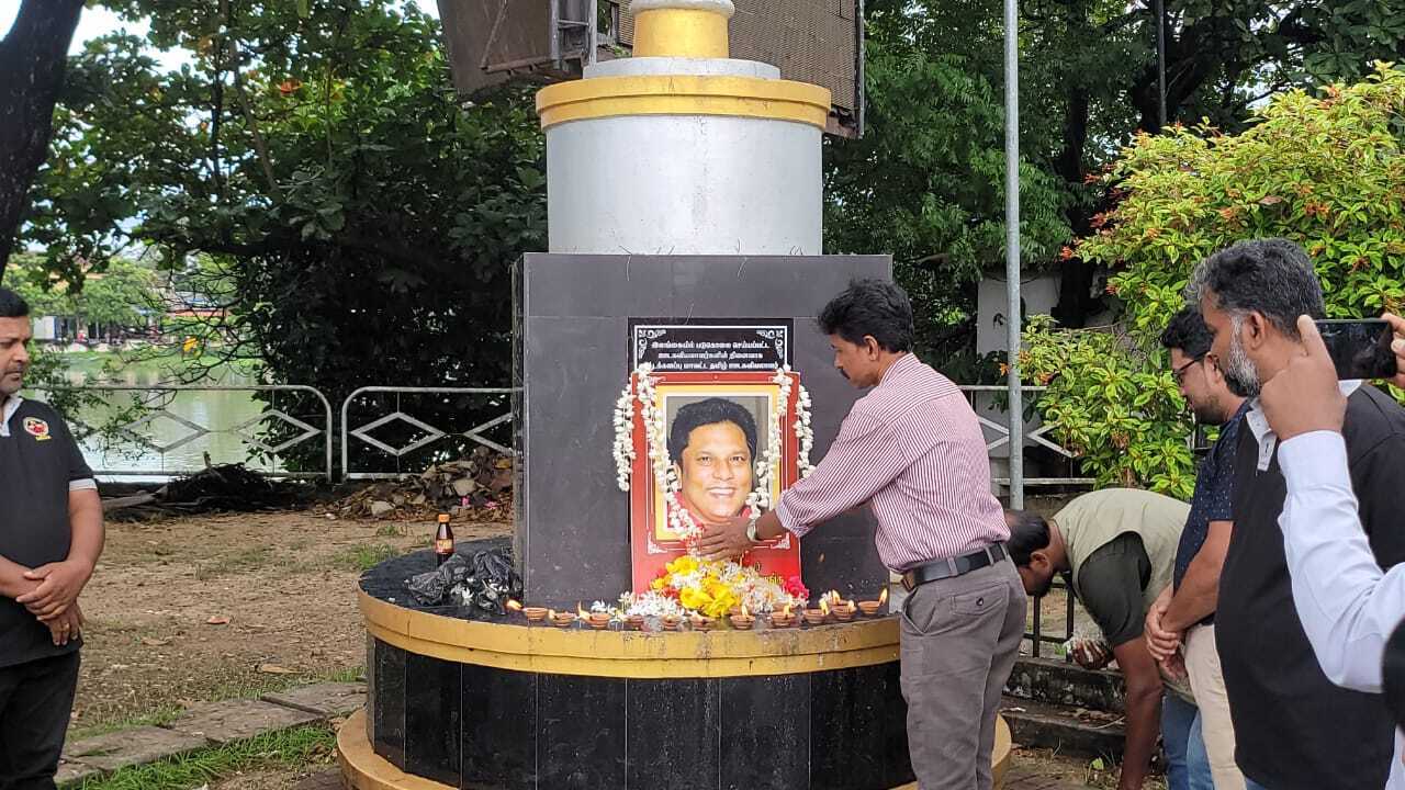 படுகொலை செய்யப்பட்ட சிரேஷ்ட ஊடகவியலாளர் அமரர் லசந்த விக்ரமதுங்கவின் 15ஆவது ஆண்டு நினைவு தினம் திங்கட்கிழமை (08) மட்டக்களப்பு நகர்ப் பகுதியிலுள்ள காந்திப் பூங்கா வளாகத்தில் அமைக்கப்பட்டுள்ள இலங்கையில் படுகொலை செயய்யப்பட்ட ஊடகவியலாளர்கள் நினைவு தூபியில் மட்டக்களப்பு தமிழ் ஊடகவியலாளர் ஒன்றியத் தலைவர் வா. கிருஷ்ணகுமார் தலைமையில் உணர்வுபூர்வமாக அனுஷ்டிக்கப்பட்டது.