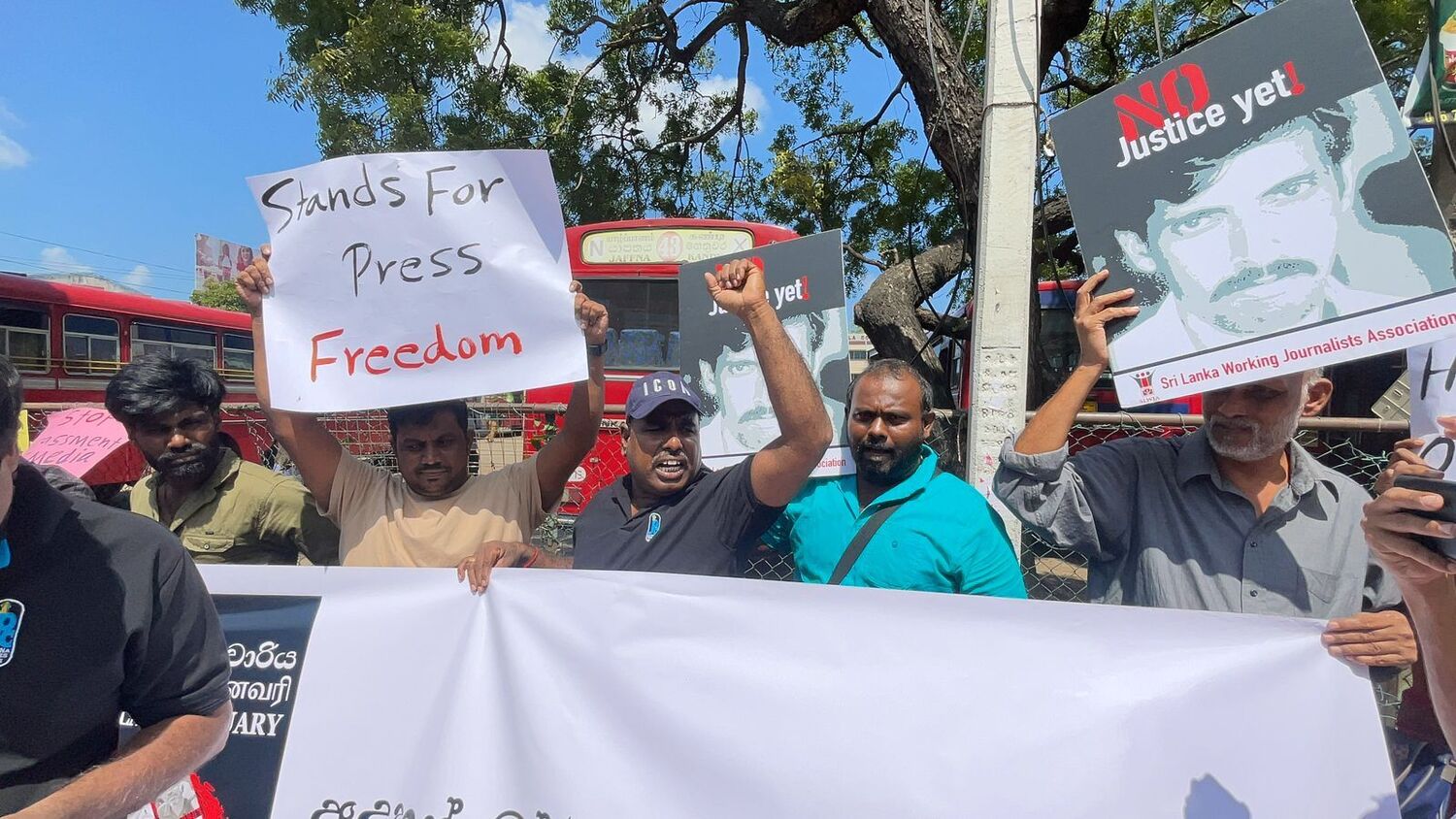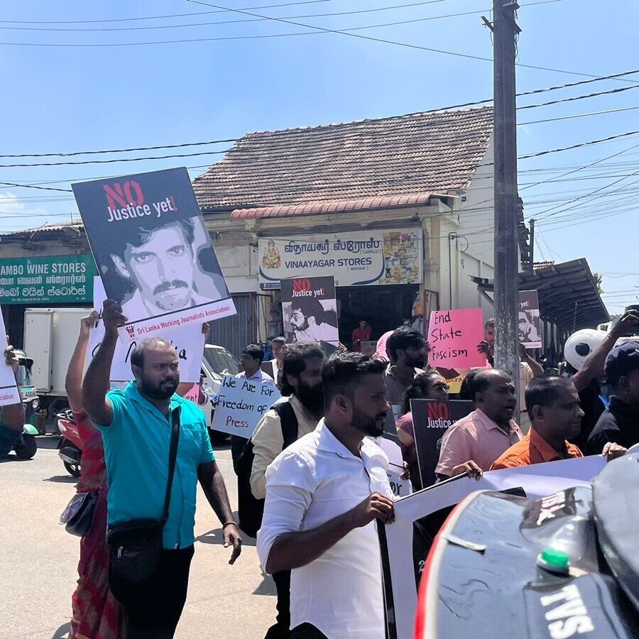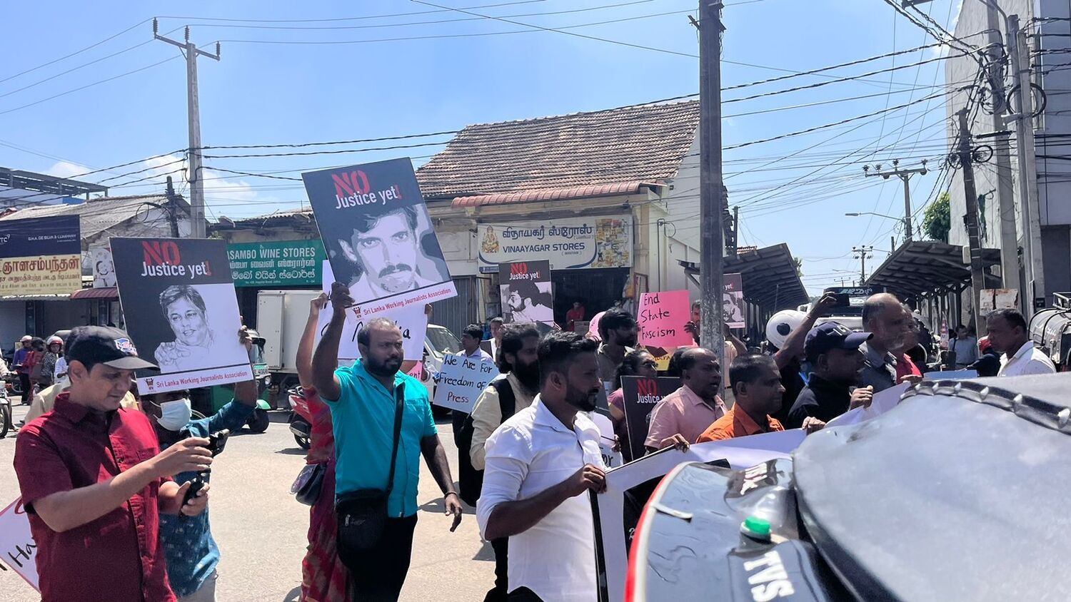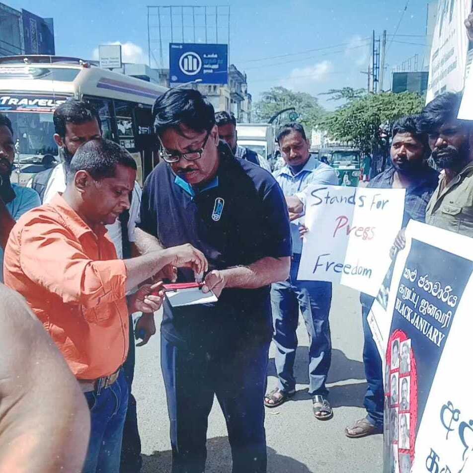 குறித்த போராட்டத்தில் இலங்கை ஆசிரியர் சங்கத் தலைவர் ஜோசப் ஸ்டாலின், யாழ். ஊடக அமையத்தின் தலைவர் கு. செல்வகுமார், உழைக்கும் பத்திரிகையாளர் சங்க தலைவர் துமிந்த சம்பத், காணாமல் ஆக்கப்பட்டோர் உறவுகள் சங்கத்தினர், ஊடகவியலாளர்கள், சிவில் சமூகத்தினர், அரசியல் பிரதிநிதிகள் என பலரும் கலந்துகொண்டிருந்தனர்.
