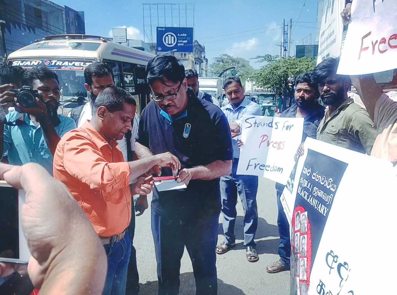 யாழ்ப்பாணம் ஊடக அமையம் மற்றும் உழைக்கும் பத்திரிகையாளர் சங்கத்தின் ஏற்பாட்டில் குறித்த போராட்டம் முன்னெடுக்கப்பட்டது.