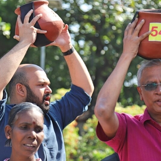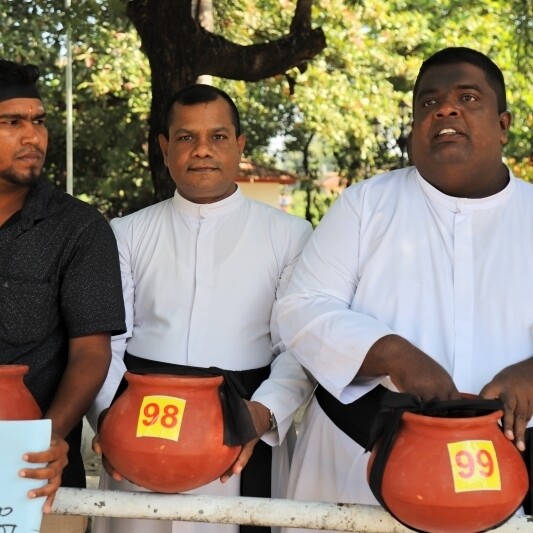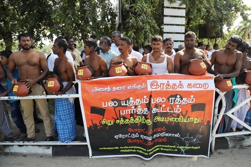 கறுப்புப் பட்டி தாங்கிய பொங்கல் பானைகள் போராட்டம்