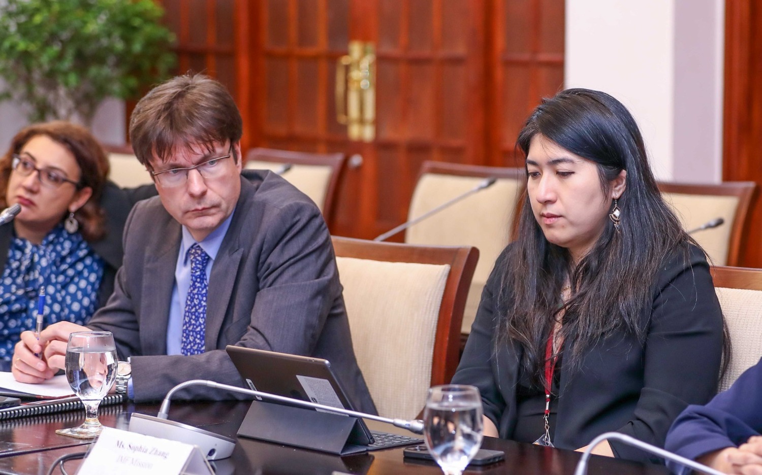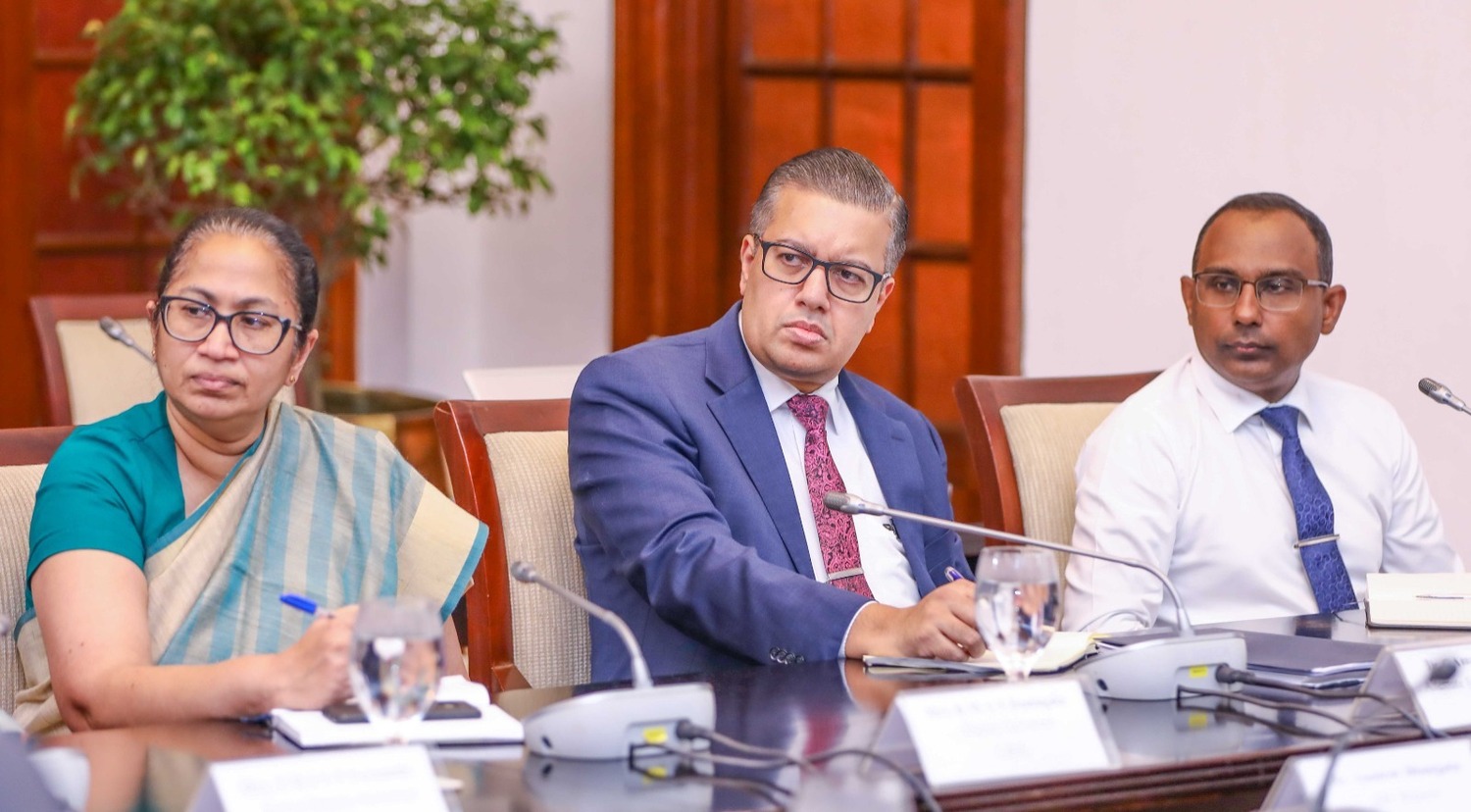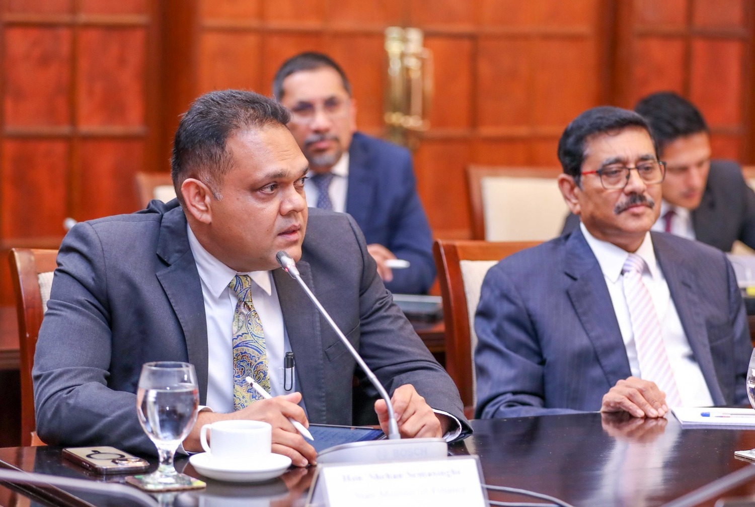 நிதி இராஜாங்க அமைச்சர் ஷெஹான் சேமசிங்க, பொருளாதார விவகாரங்களுக்கான ஜனாதிபதியின் சிரேஷ்ட ஆலோசகர் கலாநிதி ஆர்.எச்.எஸ். சமரதுங்க, நிதி அமைச்சின் செயலாளர் மஹிந்த சிறிவர்தன, மத்திய வங்கியின் ஆளுநர் கலாநிதி நந்தலால் வீரசிங்க, உள்ளிட்ட அதிகாரிகள் இந்தச் சந்திப்பில் கலந்துகொண்டனர்.