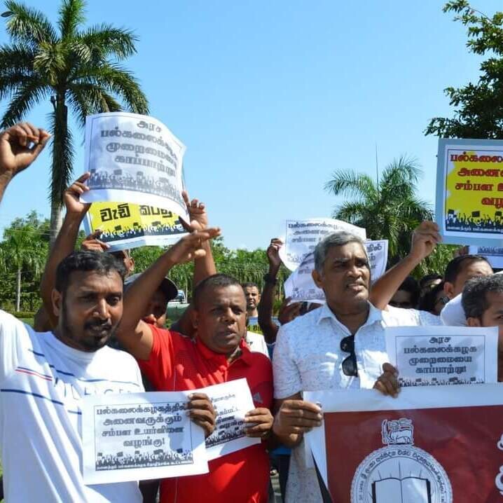 அண்மையில் இடம்பெற்ற வெள்ளப்பெருக்கின் காரணமாக பல்கலைக்கழகத்தின் சில பகுதிகள் வெகுவாக பாதிக்கப்பட்டிருந்தன. வெள்ளம் ஏற்பட்டநாள்முதல் கடுமையான சுத்திகரிப்பு பணிகளில் ஈடுபட்டிருந்த குறித்த கல்விசாரா ஊழியர்கள் இன்றைய அனைத்து வகையான பணிகளையும் இடைநிறுத்தி பணி பகிஷ்கரிப்பிலும் பாரிய ஆர்ப்பாட்டத்திலும் ஈடுபட்டனர்.
