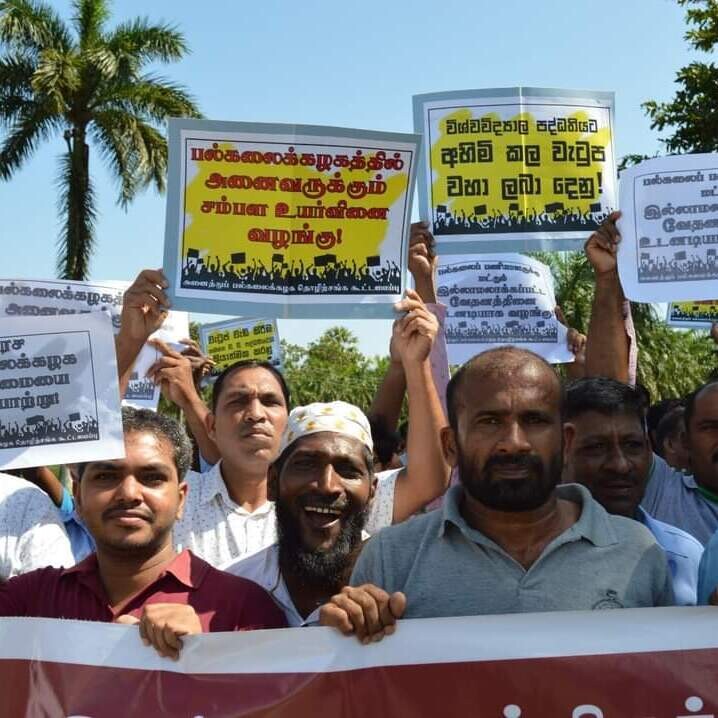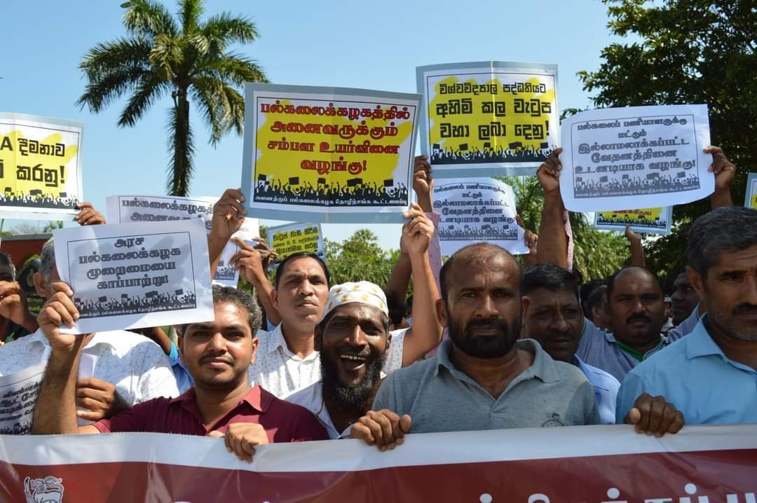 அரசாங்கத்தினால் பல்கலைக்கழகங்களுக்கு ஒதுக்கப்படும் நிதிக் குறைப்பு, மாணவர்களுக்கான கற்றல் கற்பித்தல் மற்றும் அடிப்படை வசதிகளை ஏற்படுத்திக் கொடுப்பதற்கு அரசாங்கம் போதிய நடவடிக்கை எடுக்காமை, பல்கலைக்கழக ஊழியர்களுக்கு நீண்டகாலமாக வழங்கப்படாதுள்ள சம்பள அதிகரிப்பை வழங்க கோருதல், அதிகரித்துள்ள வாழ்க்கைச் செலவுக்கேற்ப ஊதிய அதிகரிப்புச் செய்ய வலியுறுத்தல், பல்கலைக்கழகங்களில் காணப்படும் பதவி வெற்றிடங்களை நிரப்பி நிருவாக விடயங்களை சுமுகமாக முன்னெடுக்க அரசு நடவடிக்கை மேற்கொள்ளல், பல்கலைக்கழக ஊழியர்களுக்கான ஓய்வூதிய திட்டத்தை சீராக்குதல், இலவச உயர்கல்வி முறைமையை ஒழித்து தனியார் பல்கலைக்கழகங்களை ஊக்குவிக்கும் அரசின் சிந்தனைகளுக்கு எதிர்ப்பு தெரிவித்தல், ஊழியர் சேமலாப மற்றும் ஊழியர் நம்பிக்கை நிதிகளை வேறு தேவைகளுக்கு பயன்டுத்தும் அரசின் எத்தனங்களுக்கு எதிர்ப்பு வெளியிடல், அரசின் செயற்பாடுகள் காரணமாக கல்விமான்கள் நாட்டைவிட்டு வெளியேறுவதால் நாட்டின் கல்விக் கட்டமைப்பில் ஏற்படும் பாதிப்புகளை குறைக்க அரசு நடவடிக்கை எடுக்கத் தவறியமை உட்பட பல்வேறு விடயங்களை முன்வைத்து இந்த ஆர்ப்பாட்டம் நடைபெற்றது.