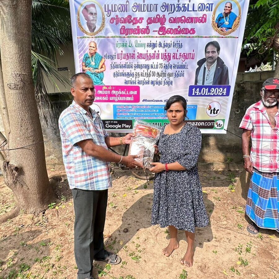 பூமணி அம்மா அறக்கட்டளையகத்தின் இலங்கை தலைவரும், முன்னாள் வடக்கு மாகாண சபை உறுப்பினருமான விந்தன் கனகரட்ணம் தலமையில் இடம் பெற்ற இந்நிகழ்வில் பொங்கல் பொதிகளை பூமணி அறக்கட்டளை இலங்கை தலைவர் விந்தன் கனரட்ணம், பூமணி அறக்கட்டளைகள் ஆலோசகர் இ.மயில்வாகனம், இலத்திரனியல் பொறியியலாளர் சா.தவசங்கரி, மற்றும் பூமணி அம்மா அறக்கட்டளைகள் நிர்வாகிகள் வழங்கிவைத்தனர்.