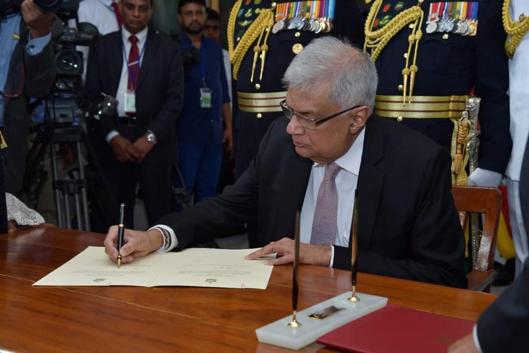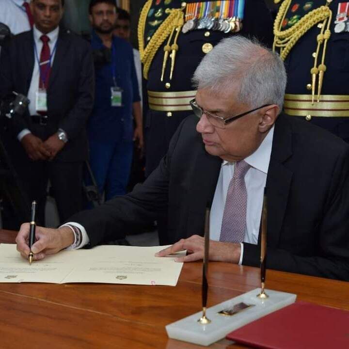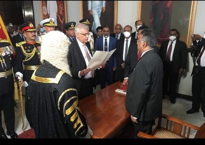 நாடாளுமன்ற வளாகத்தில் இன்று இடம்பெற்ற பதவிப் பிரமாண நிகழ்வின் போது பிரதம நீதியரசர் ஜயந்த ஜயசூரிய முன்னிலையில், ரணில் விக்கிரமசிங்க நிறைவேற்று அதிகார ஜனாதிபதியாகப் பதவிப் பிரமாணம் செய்து கொண்டார்.