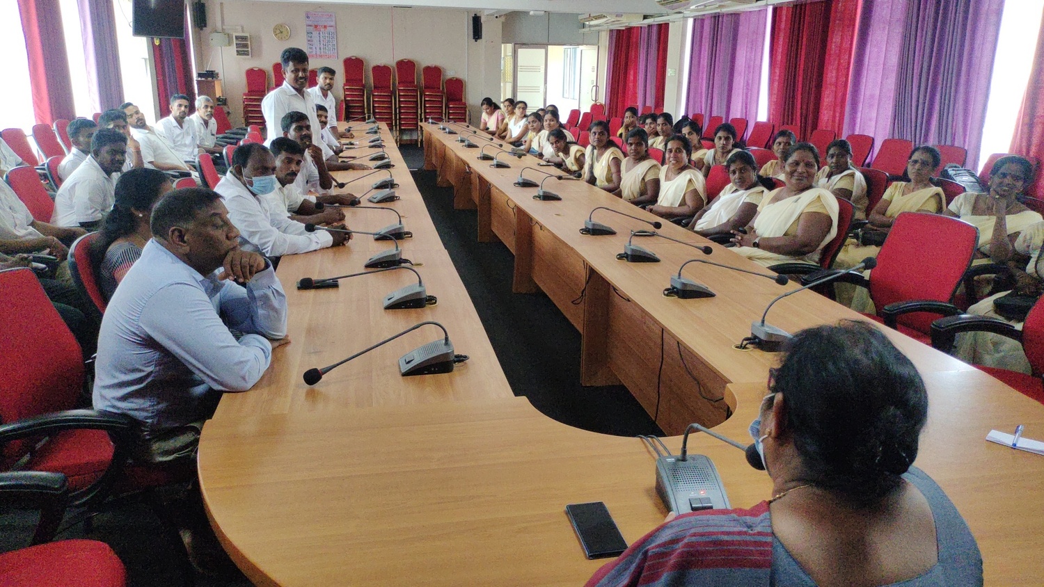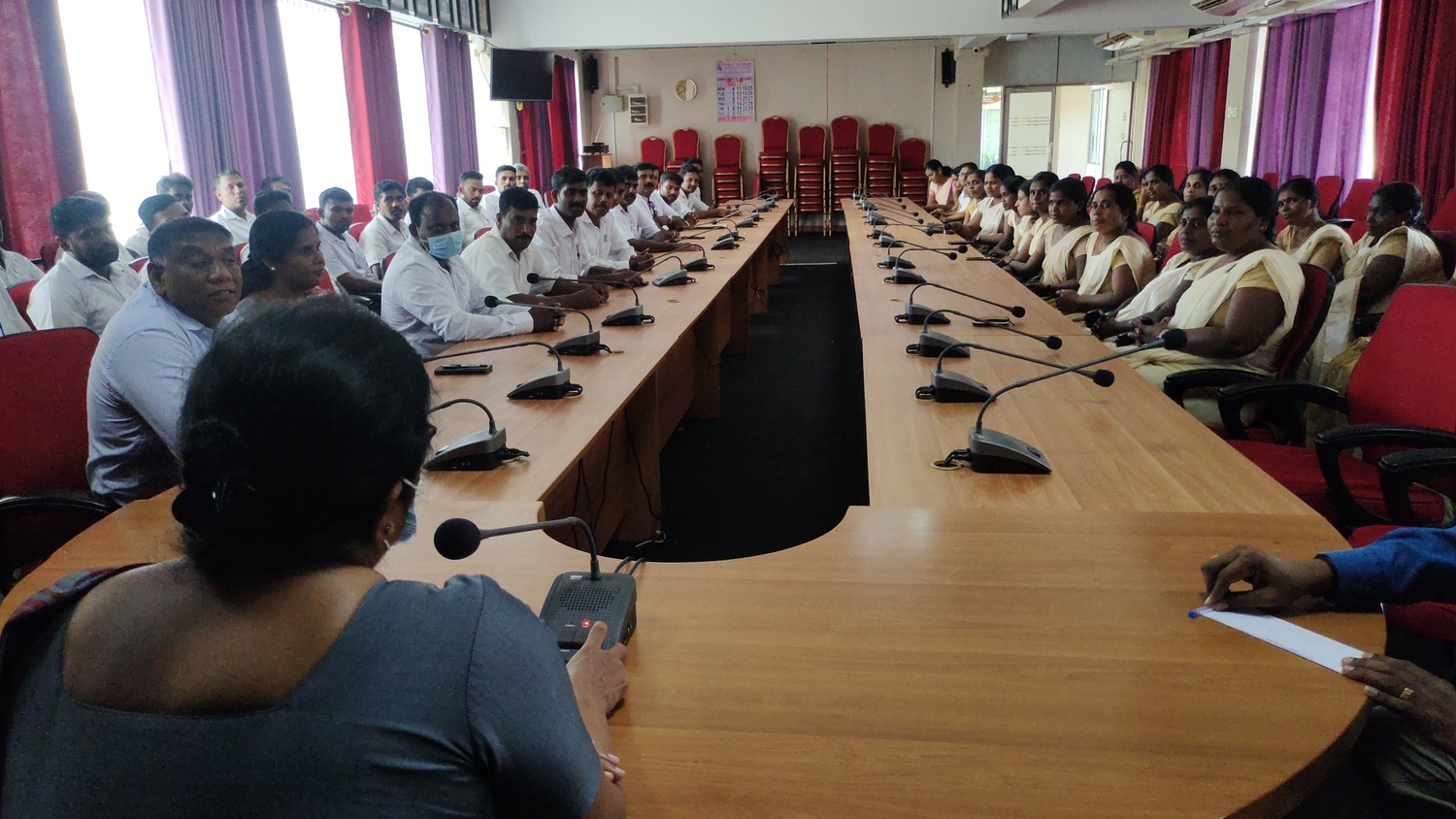 கிளிநொச்சி மாவட்ட அரசாங்க அதிபருடன் கிராம சேவையாளர்கள் கலந்துரையாடலில் இன்று காலை 11 மணியளவில் மாவட்ட செயலக மாநாட்டு மண்டபத்தில் ஈடுபட்டிருந்தனர்.