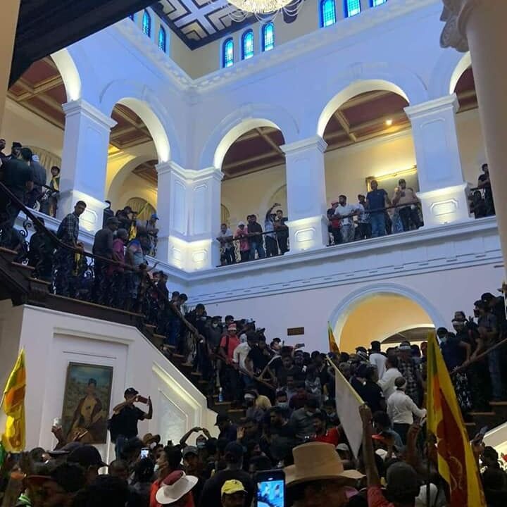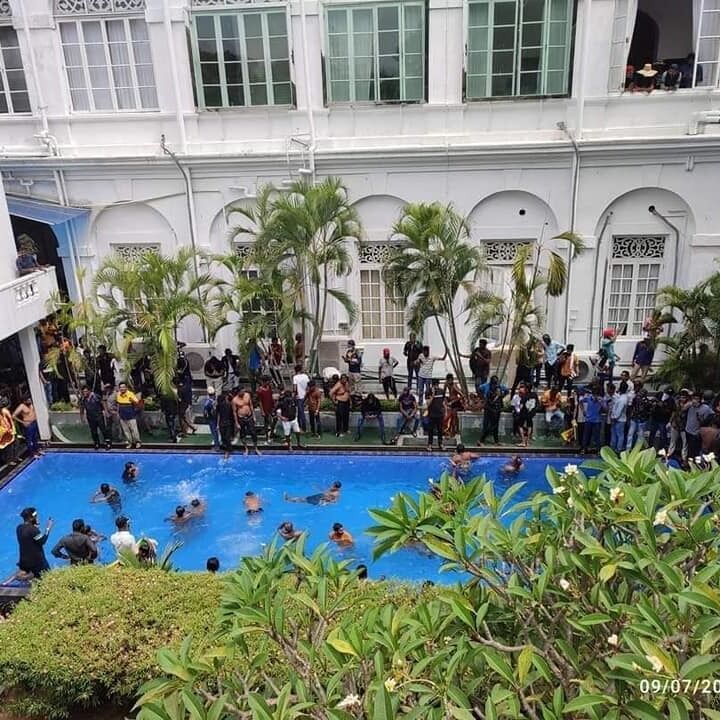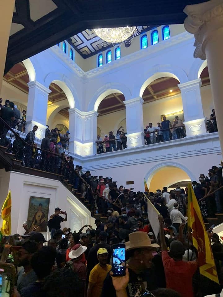 நேற்று சனிக்கிழமை கொழும்பு ஜனாதிபதி மாளிகையில் முன்நாட்டு மக்கள் மேற்கொண்ட போராட்டப் படங்களைக் காணலாம்.