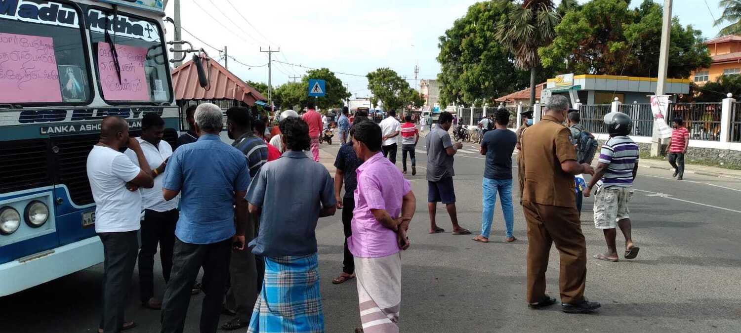 எரிபொருள் அமைச்சரின் வாக்குறிதிக்கமைய மன்னார் இலங்கை போக்குவரத்து சபை, தனியார் பேருந்து போக்குவரத்து சங்கத்துக்கு வழங்கப்படும் எரிபொருள் வழங்காமையால் செவ்வாய்க்கிழமை (05.07.2022) மன்னார் தனியார் பேருந்து சபை தங்கள் சேவையை இடைநிறுத்தியதுடன், இலங்கை போக்குவரத்து சபை பேருந்துகளையும் சேவையில் ஈடுபடாத தன்மையில் வீதியை மறித்து தங்கள் கவனயீர்ப்பு போராட்டத்தை இன்று காலை தொடக்கம் மேற்கொண்டிருந்தனர்.