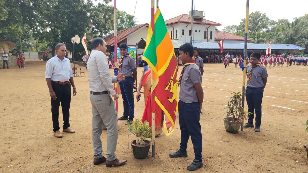 விருந்தினர் வரவேற்கப்பட்டதை அடுத்து தேசியக் கொடியேற்றப்பட்டது. தொடர்ந்து பாடசாலைக் கொடி ஏற்றப்பட்டு நிகழ்வுகள் ஆரம்பமானது.
