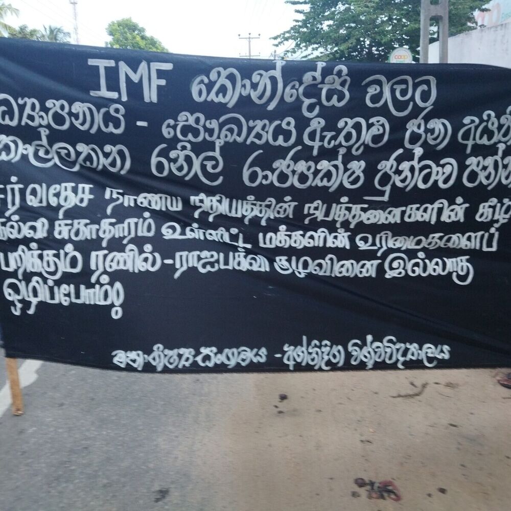 சர்வதேச நாணய நிதியத்தின் நிபந்தனைகளின் கீழ் கல்வி, சுகாதாரம் உள்ளிட்ட மக்களின் உரிமைகளைப் பறிக்கும் ரணில் - ராஜபக்ஸ குழுவை இல்லாதொழிப்போம் என்ற முக்கிய கோஷத்துடன், ஆறு மாதங்களுக்கு மேல் சிறைத்தண்டனை அனுபவிக்கும் கெலும்தில்சானை உடனே விடுதலை செய் எனும் கோரிக்கையுடனும் இந்தப் பாரிய ஆர்ப்பாட்டப் பேரணி முன்னெடுக்கப்பட்டது.