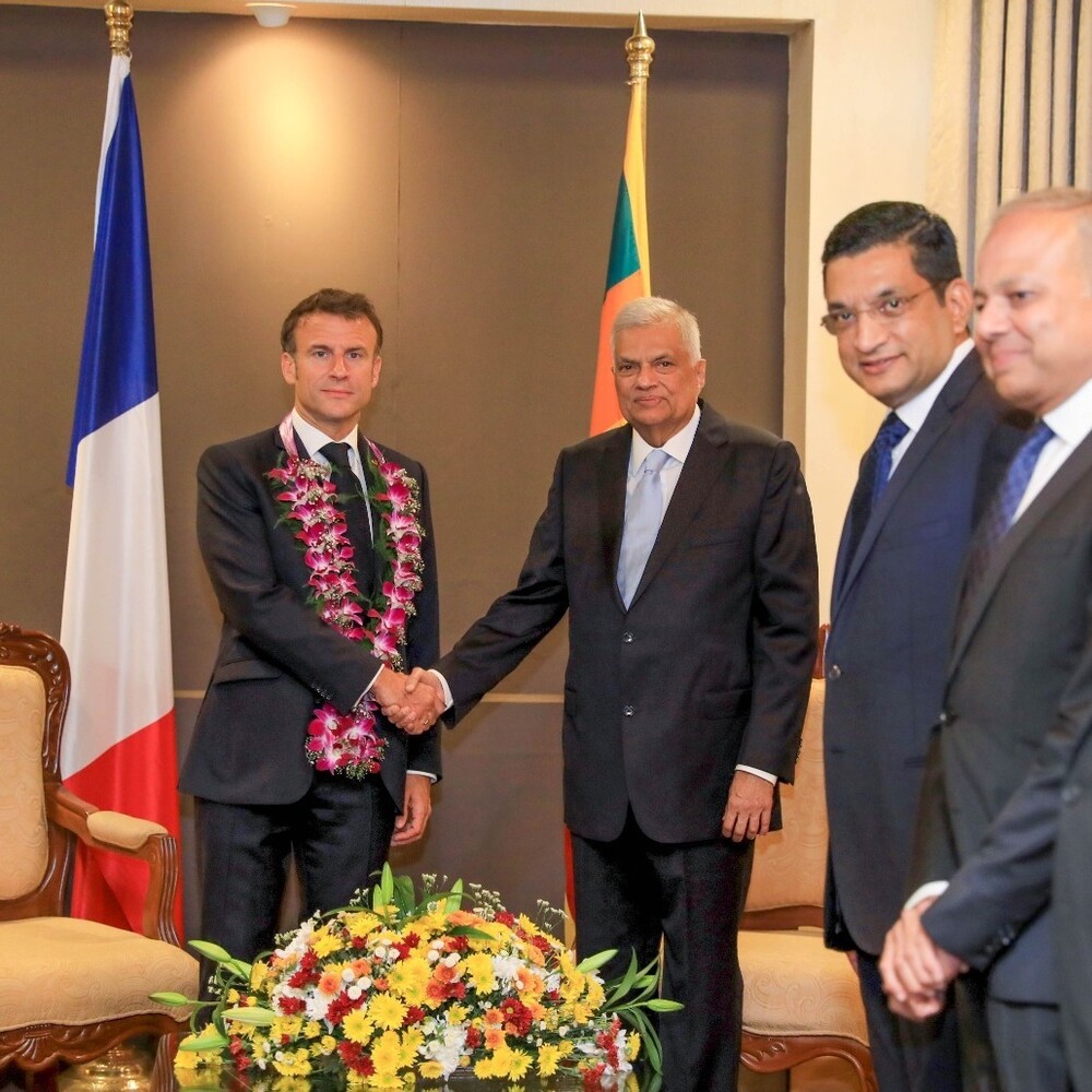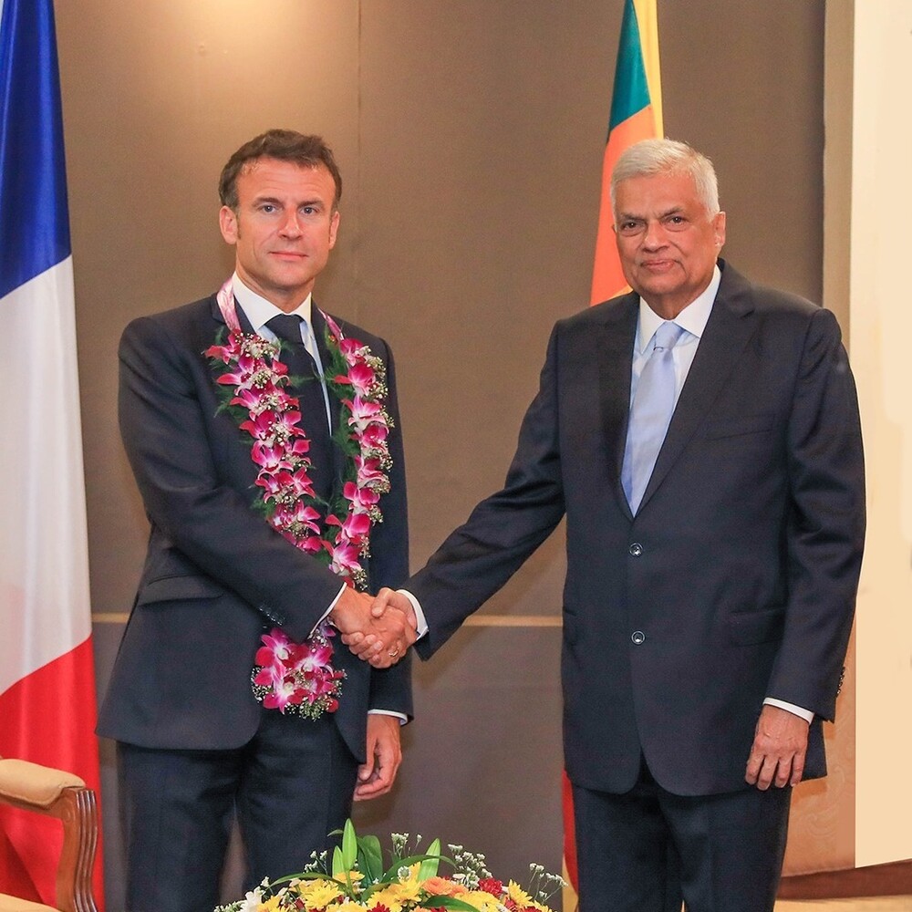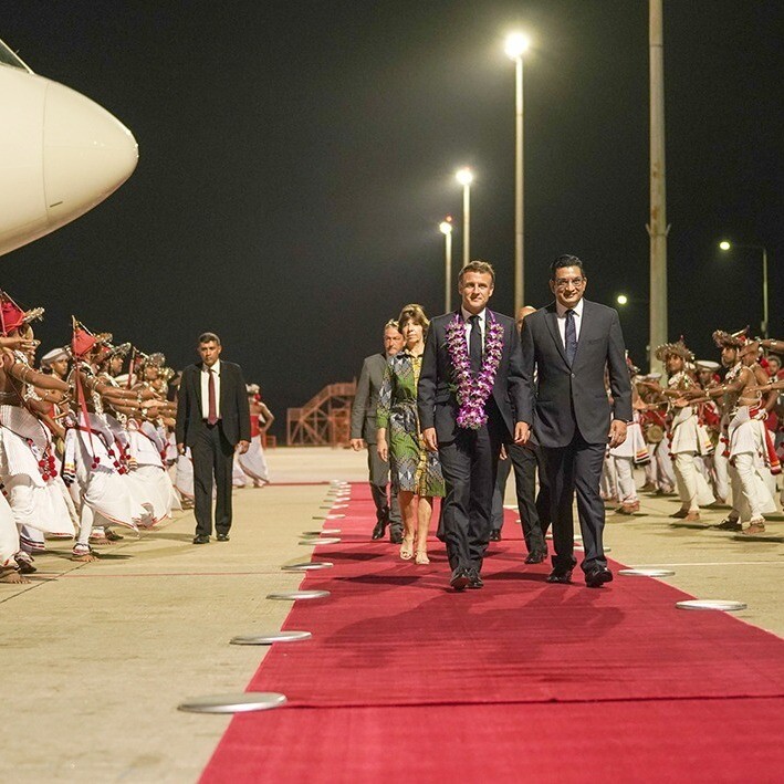 இலங்கையின் பொருளாதார மீட்சிக்கு ஆதரவளிப்பதாக மீண்டும் உறுதியளிப்பு, இலங்கையின் கடன் மறுசீரமைப்பு திட்டத்திற்கும் பிரான்ஸ் ஆதரவு, பல புதிய துறைகள் மூலம் இரு நாடுகளுக்கும் இடையிலான இருதரப்பு உறவுகளை பலப்படுத்துவது தொடர்பில் ஆராய்வு பிரான்ஸ் ஜனாதிபதி இம்மானுவேல் மெக்ரோன் தனது தென் பசுபிக் பிராந்தியத்திற்கான விஜயத்தின் பின்னர் வெள்ளிக் கிழமை (28) இலங்கைக்கு வரலாற்று சிறப்புமிக்க விஜயமொன்றை மேற்கொண்டிருந்தார். பிரான்ஸ் ஜனாதிபதியொருவர் இந்நாட்டுக்கு வருகை தருவது இதுவே முதல் தடவையாகும்.