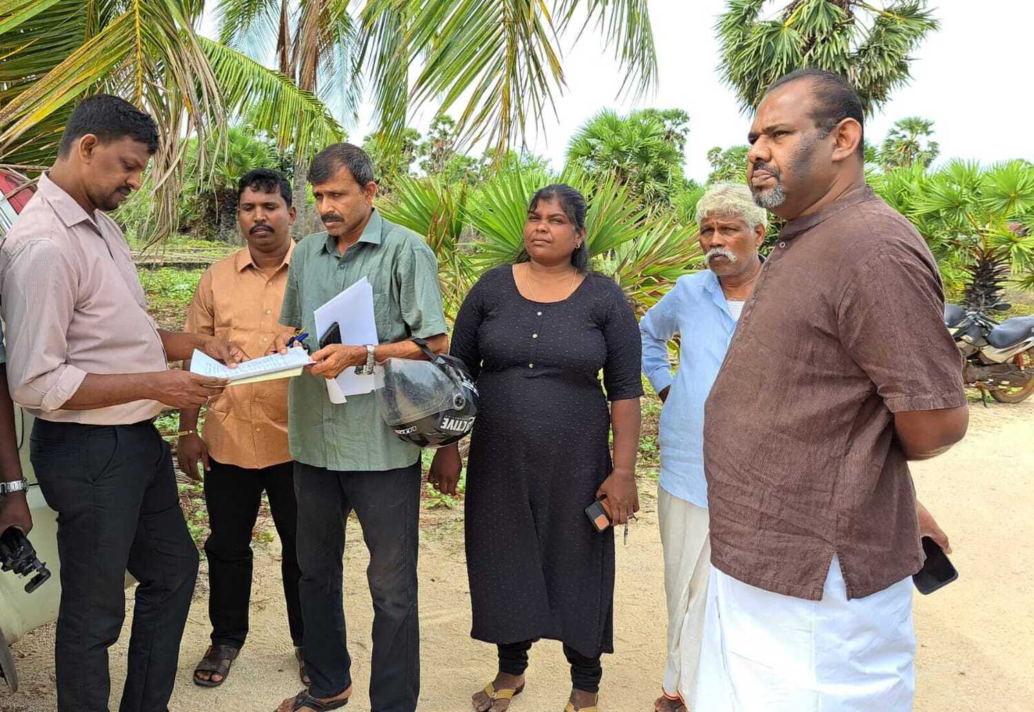 தனியார் ஒருவருக்கு சொந்தமான காணியை கடற்படைக்கு சுவீகரிப்பதற்காக நில அளவைத் திணைக்களத்தினர் யாழ்ப்பாணத்திலிருந்து வருகை தந்திருந்தனர்.