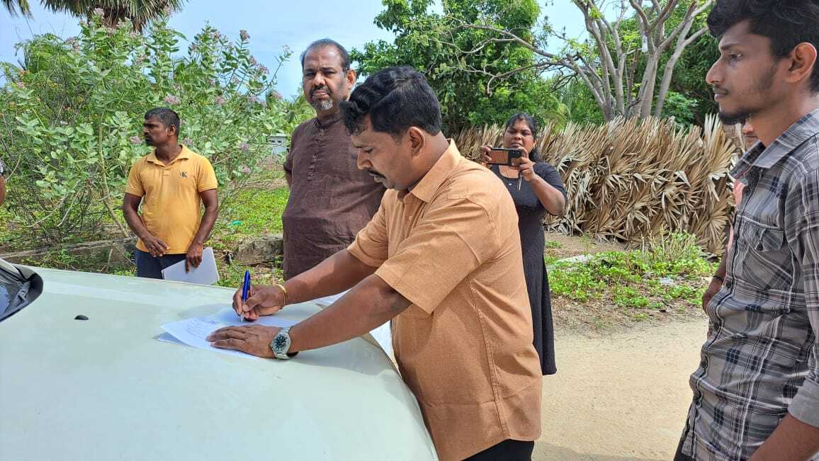 இந்நிலையில் குறித்த நில அளவை அதிகாரியால் தனக்கு எழுத்து மூலமாக கடிதம் ஒன்றினை தருமாறு கூறப்பட்ட நிலையில் காணி உரிமையாளர், பொது அமைப்புகளின் பிரதிநிதிகள், பாராளுமன்ற உறுப்பினர்களான செல்வராசா கஜேந்திரன், கஜேந்திரகுமார் பொன்னம்பலம், வடக்கு மாகாண சபையின் முன்னாள் உறுப்பினர் திரு.சுகிர்தன் ஆகியோரால் ஒப்பமிட்டு கடிதம் வழங்கப்பட்ட நிலையில் குறித்த காணி அளவீடு செய்வதை நிறுத்திவிட்டு நில அளவைத் திணைக்களத்தினர் திரும்பிச் சென்றுள்ளனர்.