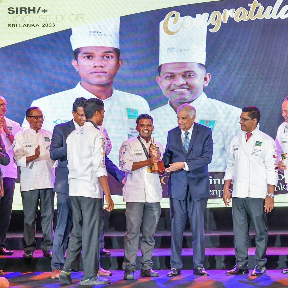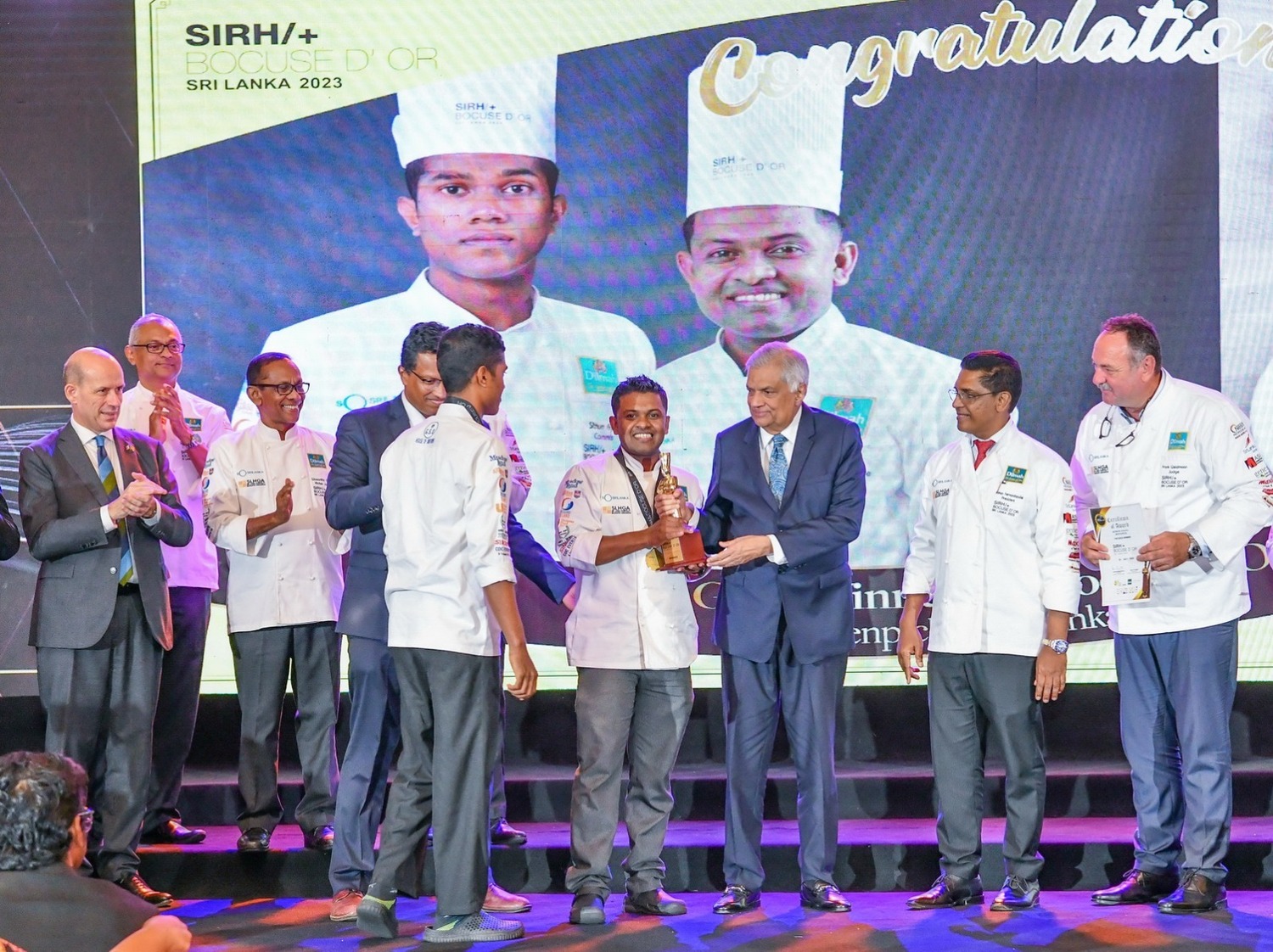 Bocus d'Or 2023 போட்டியின் வெற்றியாளர்களுக்கு ஜனாதிபதி ரணில் விக்ரமசிங்க வெற்றிக்கிண்ணங்கள் மற்றும் சான்றிதழ்களை வழங்கினார்.