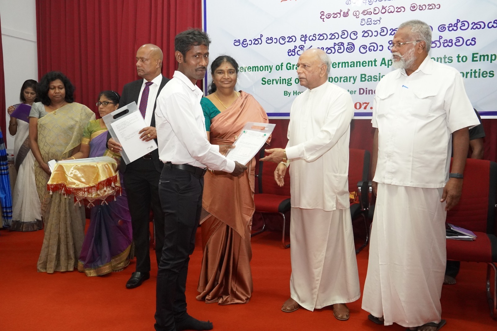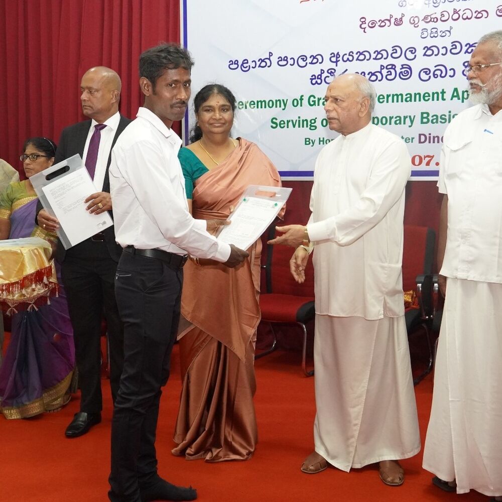 கிளிநொச்சி மாவட்ட செயலக வளாகத்துக்குள் அமைந்துள்ள வியாபார நிலையத்தை திறந்து வைத்த ஜனநாயக சோசலிச குடியரசின் பிரதமர் தினேஷ் குணவர்த்தன அவர்கள் மூன்று இளம் வியாபார முதலீட்டாளர்களுக்கு வியாபாரத் சான்றிதழ்கள் வழங்கி வைத்தார்.
