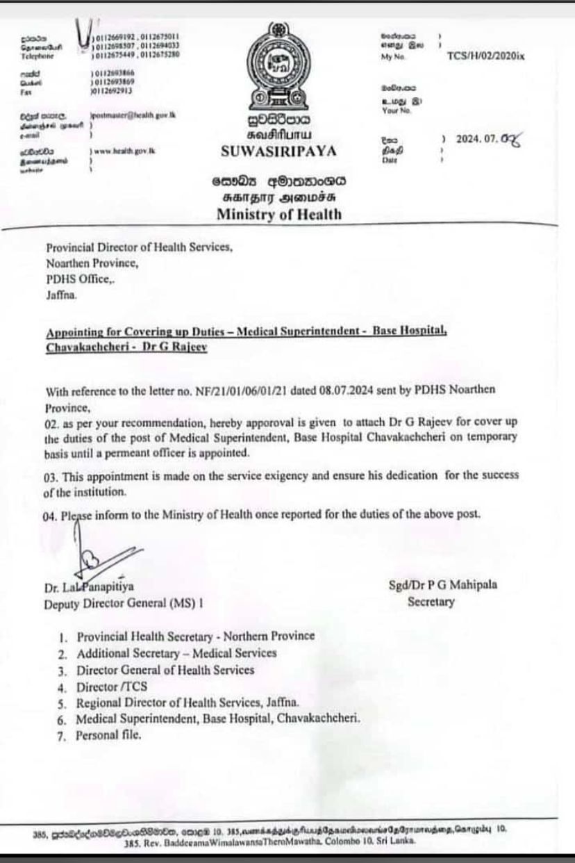 இந்நிலையில் மக்களை சமாளித்தவாறு வைத்தியர் அர்ச்சுனா அவர்கள் நேற்று (08) வைத்தியசாலையை விட்டு கொழும்புக்கு புறப்பட்டார். அந்தவகையில் வைத்தியசாலையின் கடமைகளை இன்றையதினம் வைத்தியர் ரஜீவ் பொறுப்பேற்றார்.