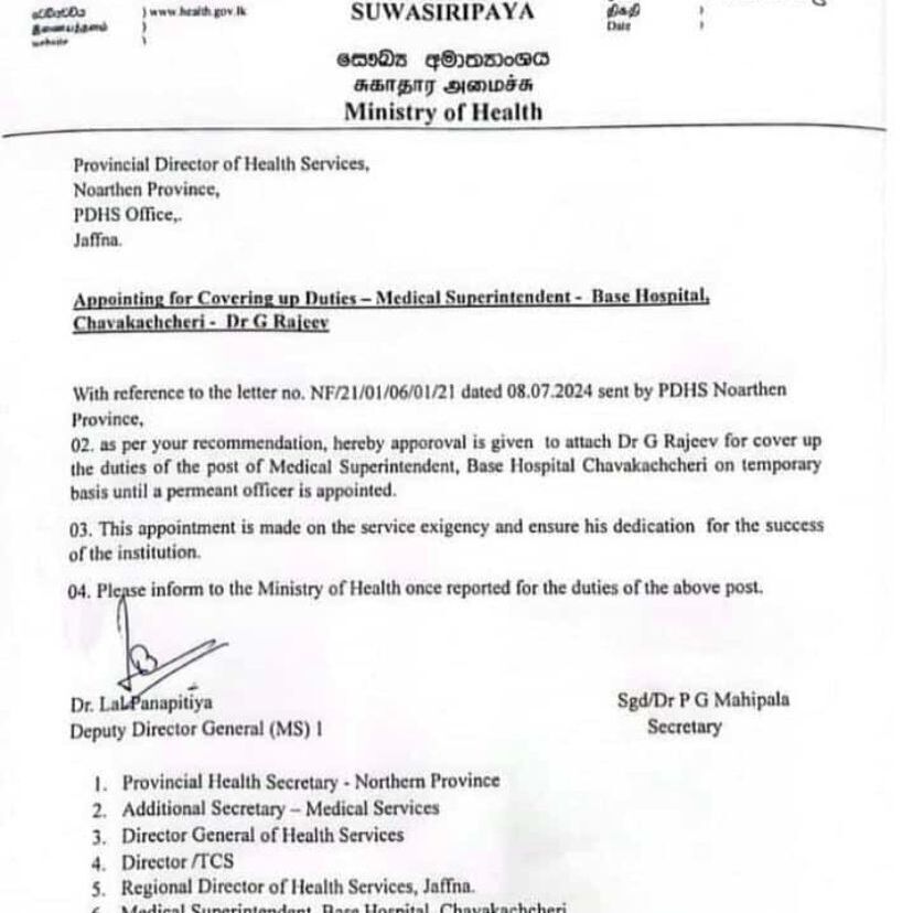 சாவகச்சேரி ஆதார வைத்தியசாலையின் கடமைகளை வைத்தியர் ரஜீவ் அவர்கள் இன்றைய தினம் (09) செவ்வாய்க்கிழமை பொறுப்பேற்றார்.