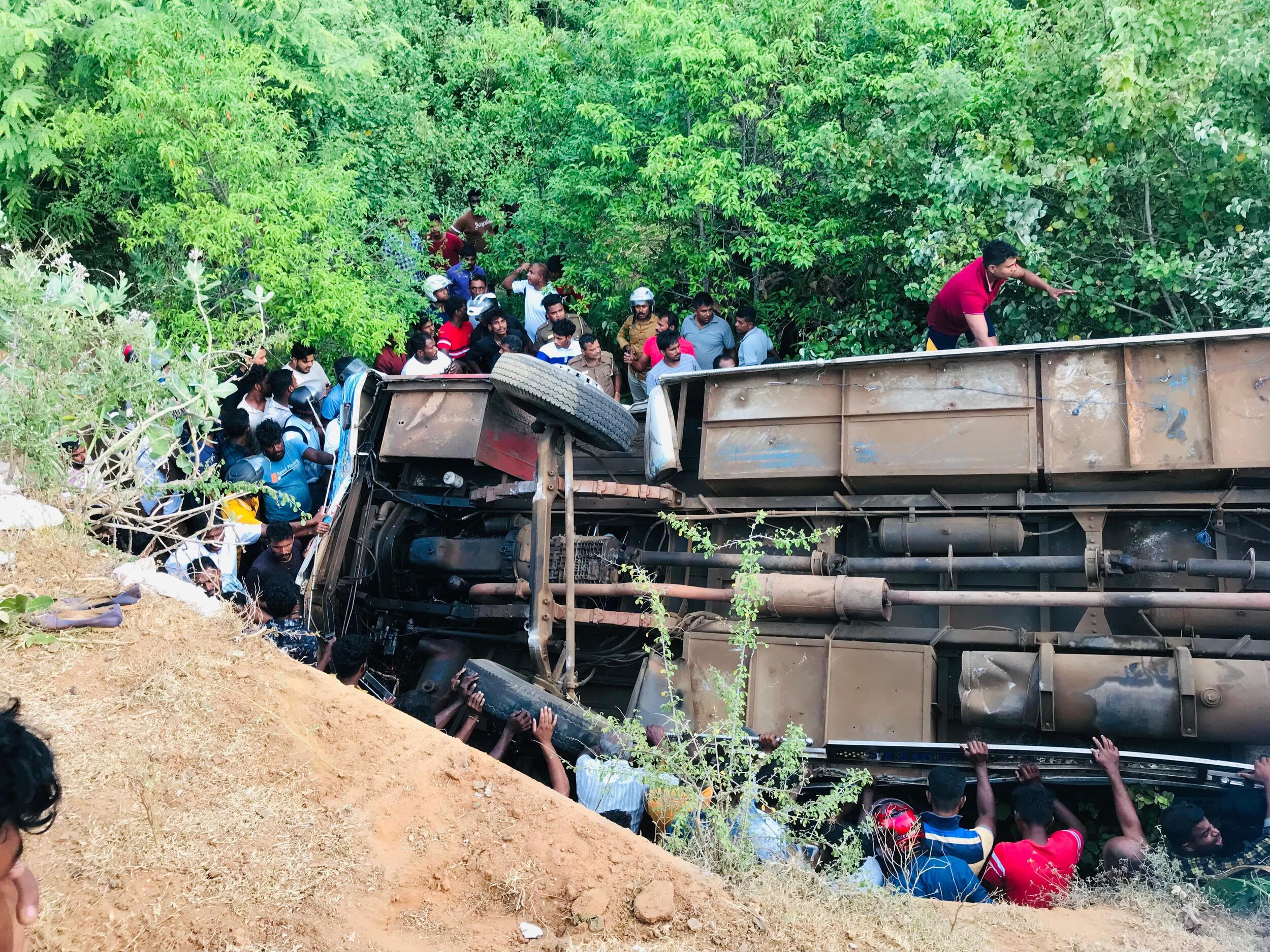 திருக்கோணேஸ்வரம் ஆலயத்துக்கு சென்றுவிட்டு, திருகோணமலை - மட்டக்களப்பு பிரதான வீதியூடாக பேருந்து கதிர்காமம் நோக்கி பயணமானது. இதன்போது, மூதூர் - கங்கை பாலத்துக்கு அண்மையாக பேருந்து தடம்புரண்டு விபத்துக்கு உள்ளானது. இதில், 30இற்கும் மேற்பட்டவர்கள் காயமடைந்தனர்.