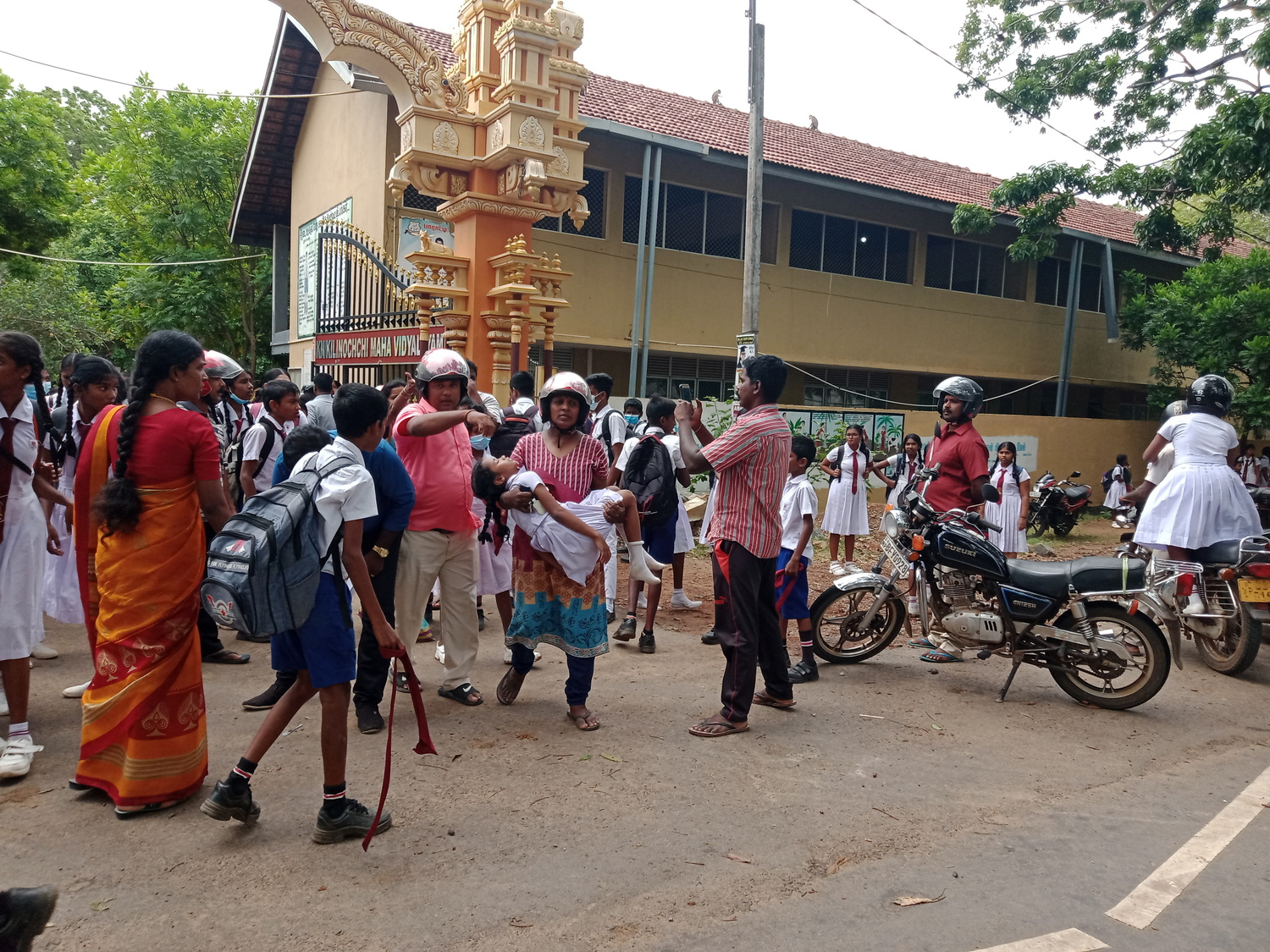 குறித்த நேரத்தில் மாணவர்கள் பதற்றத்துக்குள்ளாகியதோடு, சில மாணவிகள் குளவி கொட்டுக்கு உள்ளாகி மயக்கமடைந்தும் காணப்பட்டனர். இவர்கள் உடனடியாக சமூர்த்தி திணைக்களப் பணிப்பாளரின் வாகனத்தில் வைத்தியசாலைக்கு அனுப்பி வைக்கப்பட்டனர்.