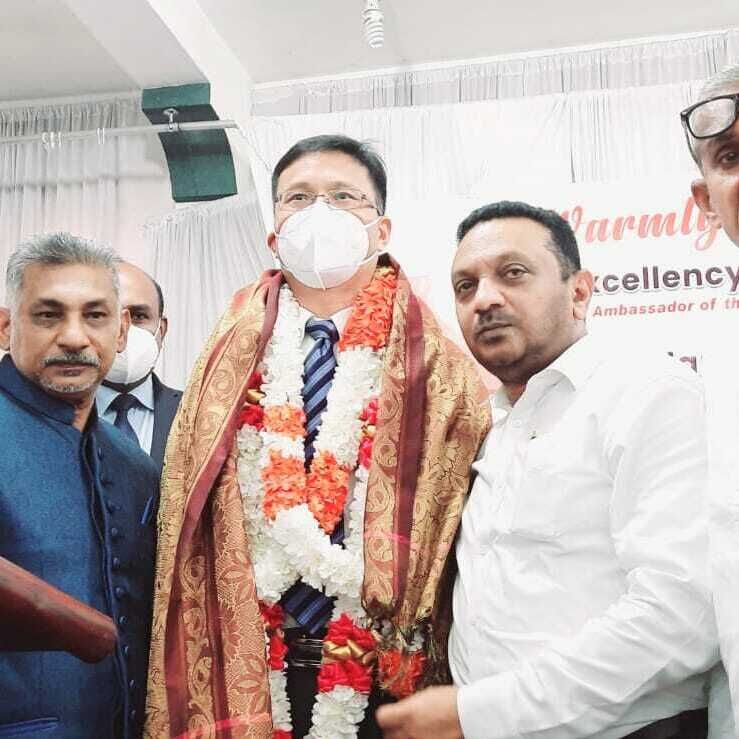 அத்துடன் கல்முனை மாநகர மக்கள் சார்பில் சீனத் தூதுவரை முதல்வர் தலைமையில் பிரதி முதல்வராகிய நான் உட்பட மாநகர சபை உறுப்பினர்களும் இணைந்து பொன்னாடை போர்த்தி, நினைவுச் சின்னம் வழங்கி கெளரவித்தோம்.