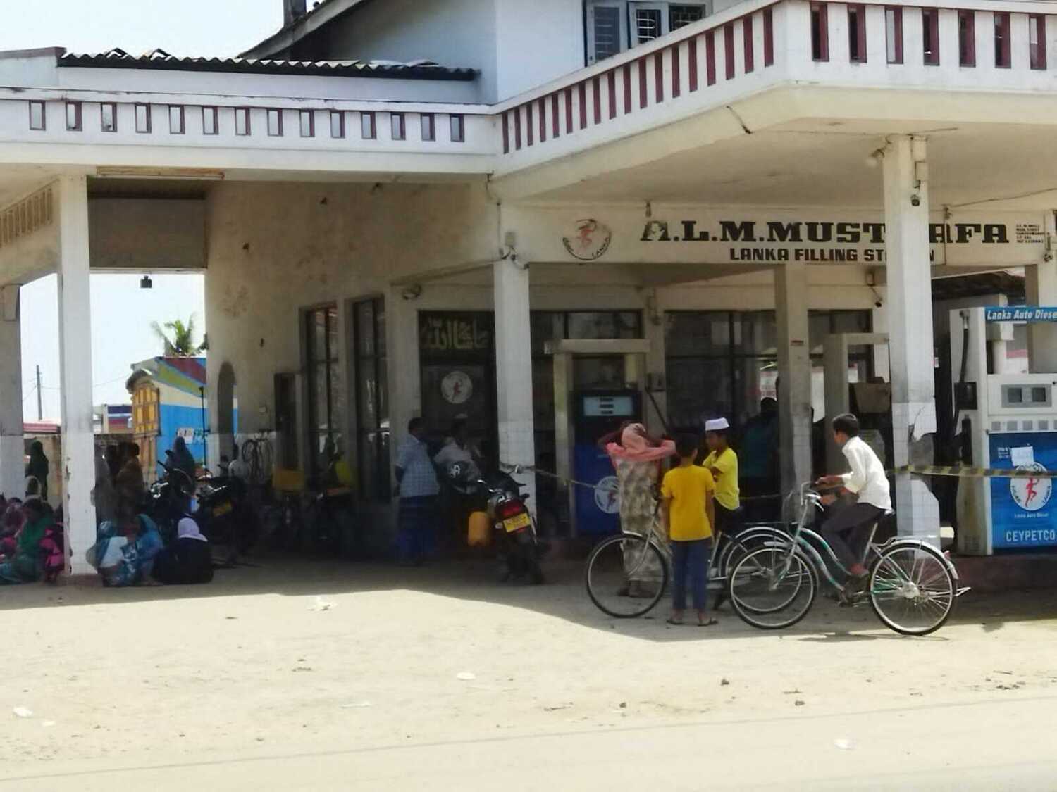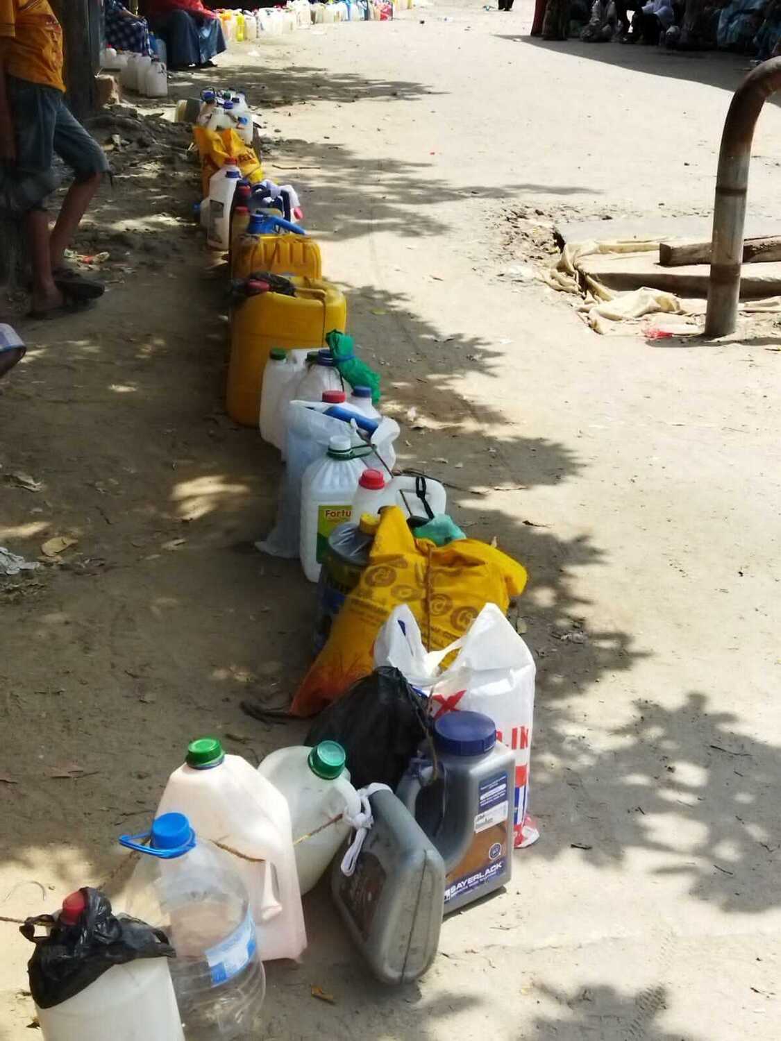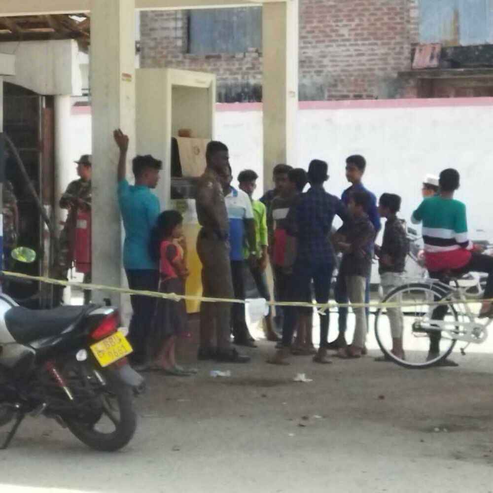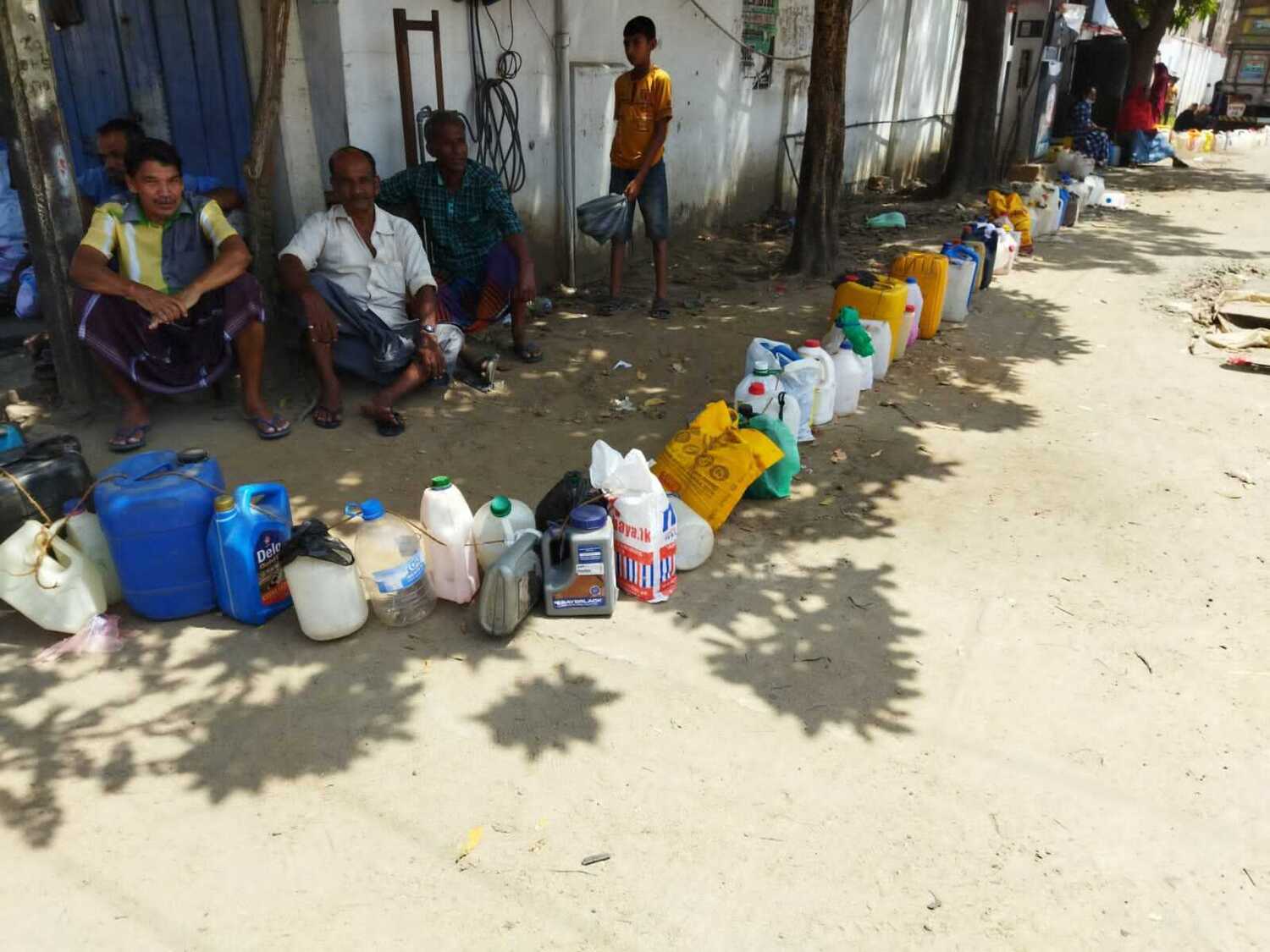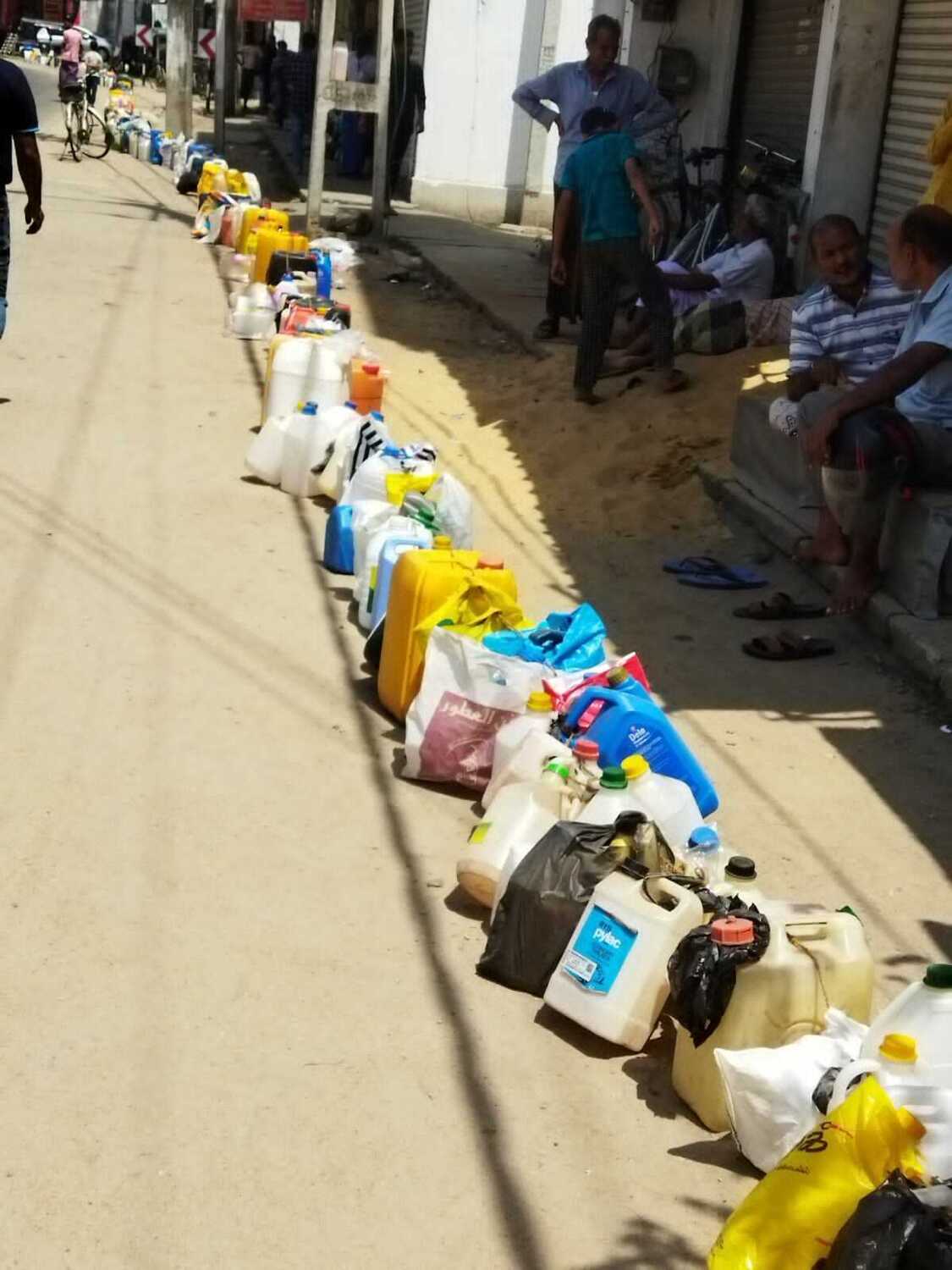 மண்ணெண்னை பெறுவதற்கான கலன்களை கியூ வரிசையில் அடுக்கிவிட்டு அருகிலுள்ள நிழல் தரும் இடங்களில் மக்கள் கூட்டங் கூட்டமாக அமர்ந்திருந்ததையும் காணக்கூடியதாக இருந்தது.